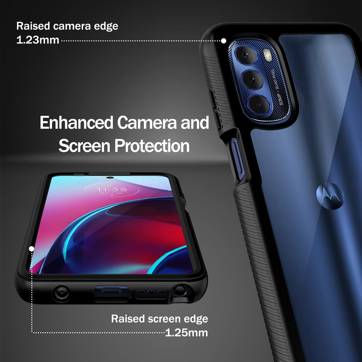 Q: What kind of protection does this case offer for the Moto G Stylus 2022?A: This case provides military-grade protection certified by MIL-STD 810G-516.6, ensuring excellent shockproof defense against drops and bumps, along with a built-in HD plastic screen protector.