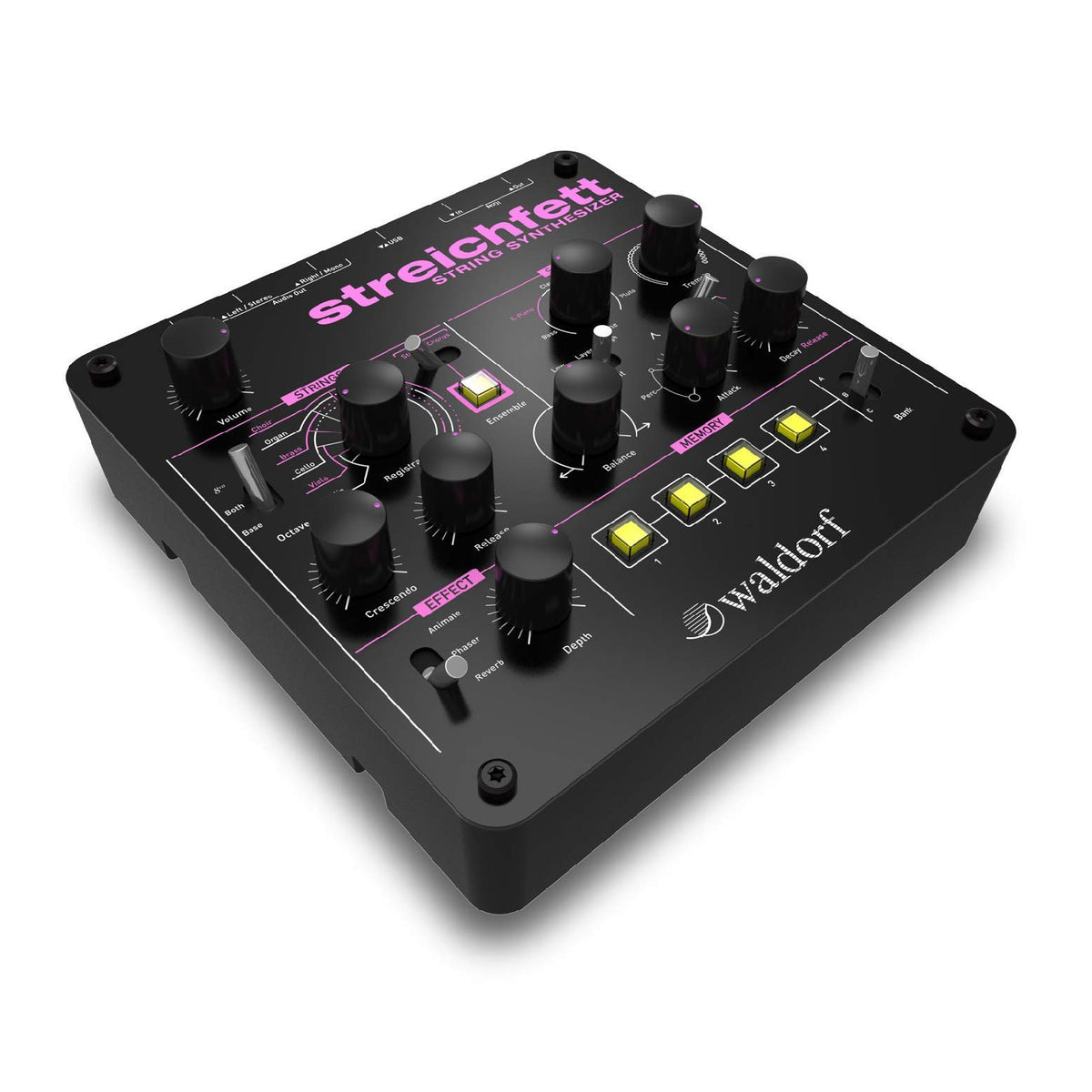 Back In The Late '70S, Synthesists Desperately Tried Replicating Strings, Failed Miserably, And Came Up With Many Of The Most Iconic Synth Sounds Of All Time. The Waldorf Streichfett Synth String Module Delivers This Same Kind Of Sound In A Way Few Of Us At Gearnuts Have Seen In Decades, And It'S Absolutely Astonishing. From Solo Sounds To Massive Layered Ensembles, The Streichfett Gives You An Impressive Range Of Tone And Character, While Onboard Effects Give You Unlimited Freedom To Explore Your Creativity. And With Both Midi And Usb Connectivity, Integrating A Waldorf Streichfett Into You Rig Is A Piece Of Cake. Waldorf Streichfett Synth String Module At A Glance: Build A Rich And Lush Sound Bed With The Strings Section Add Definition To Your Program With The Solo Section Get Crazy And Creative With The Effects Section Build A Rich And Lush Sound Bed With The Strings Section Smoothly