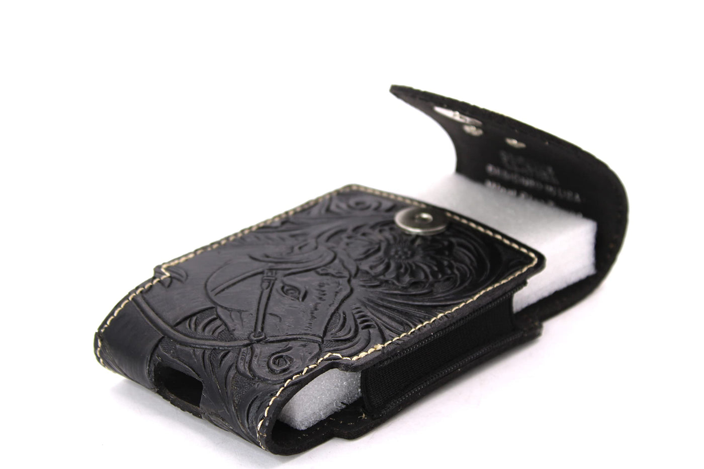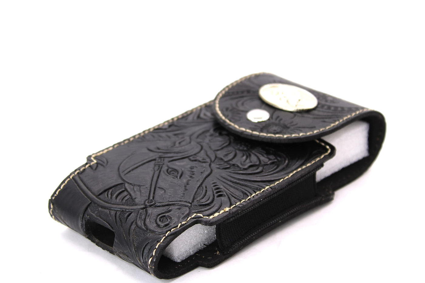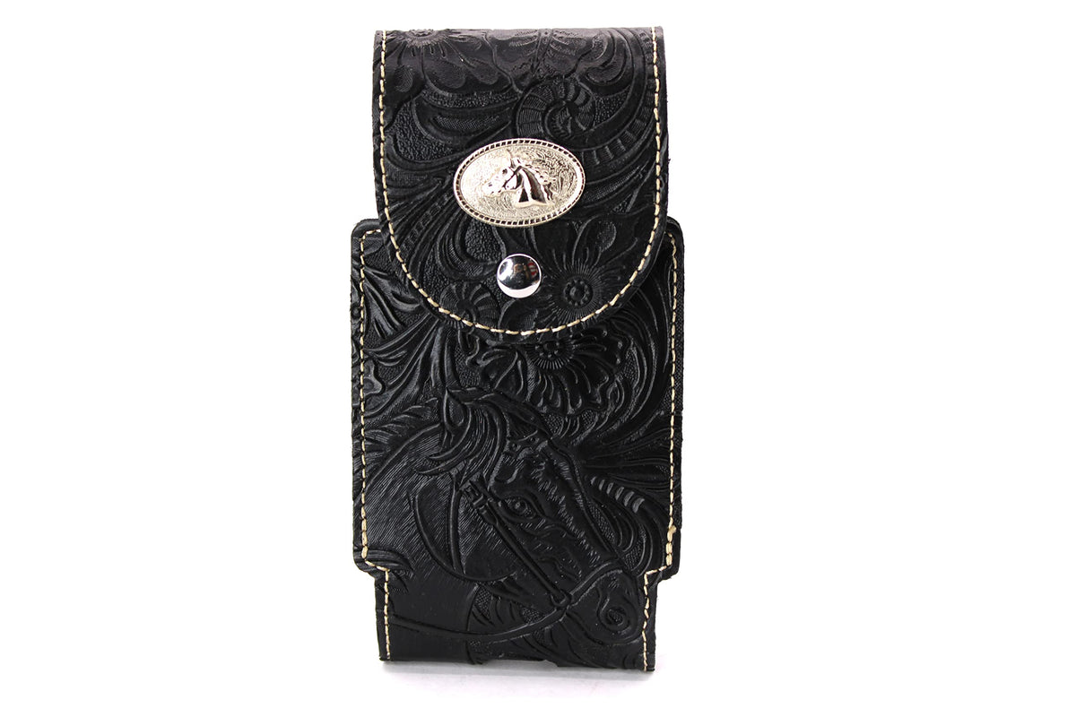 West Star Leather Phone Holster Universal Cellphone Holder Pouch With Belt Loop Magnetic Closure 327B 2 Horse Bk