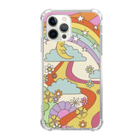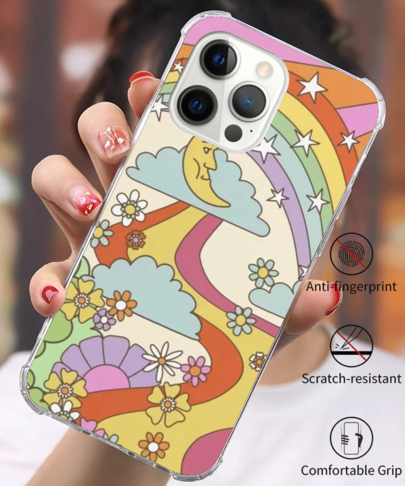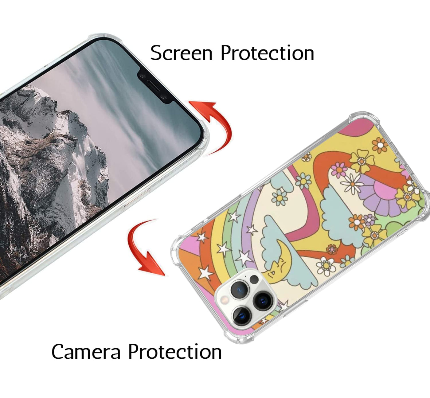 Widofvspky Rainbow Flowers Peace Signs 70'S Retro Pattern Phone Case Compatible With Iphone 12/12 Pro, Retro Hippie Boho Rainbow