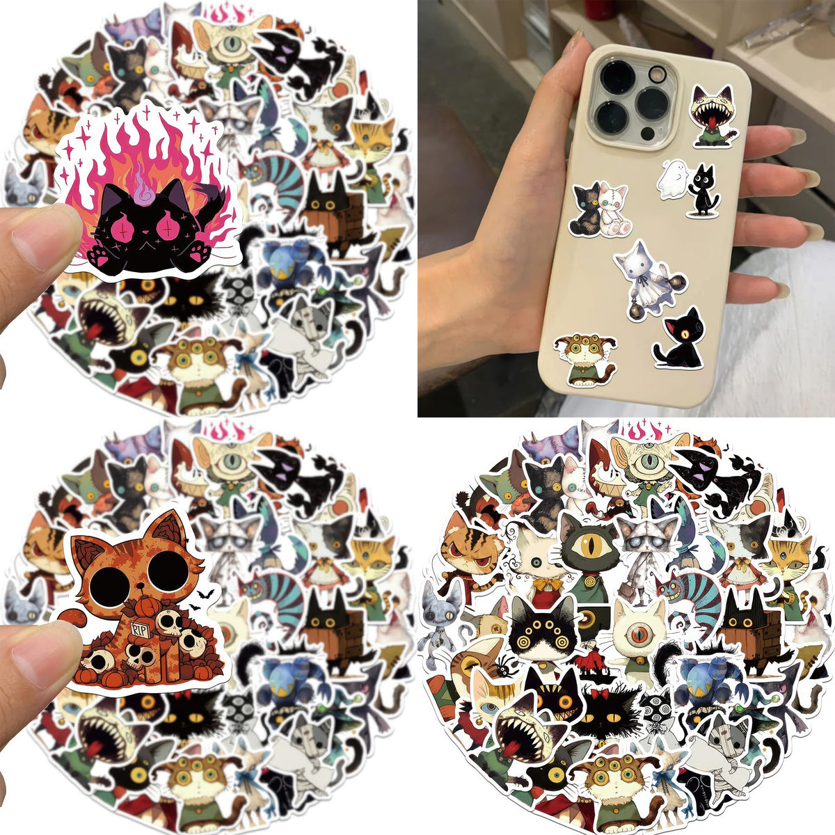 50Pcs Cute Black Cats Stickers For Kids Teens And Adults Theme: Black Cats Quantity: 50Pcs/Pack Material: High Quality Vinyl Pvc Single Size: About 2-2.3 Inch Features: Waterproof, Sun-Proof, Reusable! Repeated Used Almost Without Leaving Adhesive. Easily Peel Off And Stick On Other Place. Widely Used: Stickers Can Be Applied To A Wide Range Of Objects, Such As Computers, Skateboards, Water Bottles, Phones, Suitcases, Guitars, Refrigerators,Bumpers, Etc. Get Your Stickers, Clean The Surface, Sticker On, Then Use Your Imagination Create Works Now! Warm Tip: These Stickers Are Not Suitable For Rough, Uneven And Dirty Surfaces.