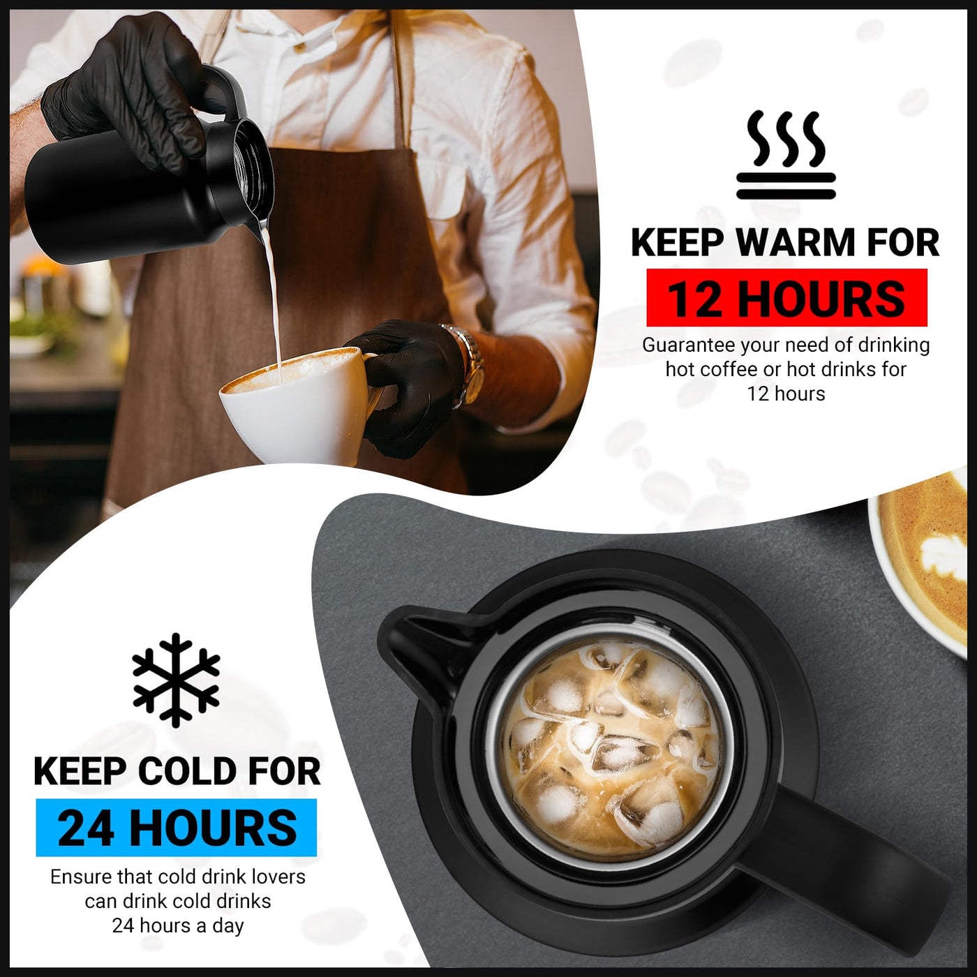 Q: How long can the WYHVAND Thermal Coffee Carafe keep beverages hot?A: The WYHVAND 51oz Thermal Coffee Carafe is designed with advanced double-wall vacuum insulation that can keep your beverages hot for hours, making it ideal for serving coffee, tea, or hot water.