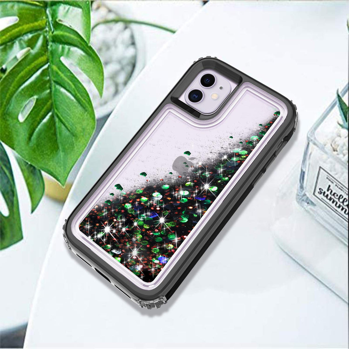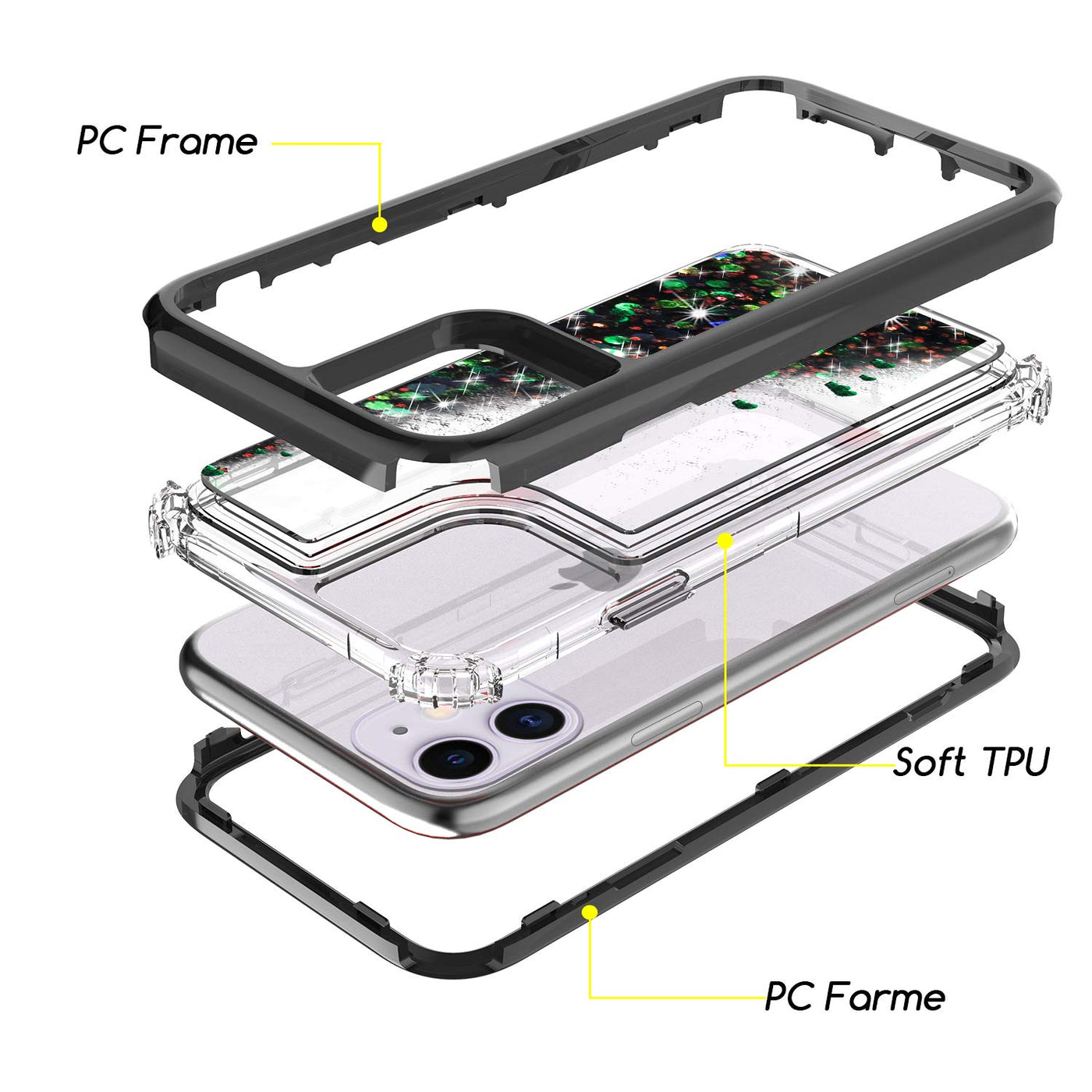 Wzoka For Iphone 11 Case, Unique Style Liquid Glitter Case, Iphone 11 6.1 Inch, 3 In 1 Hybrid Quicksand Sparkle Heavy Duty Case