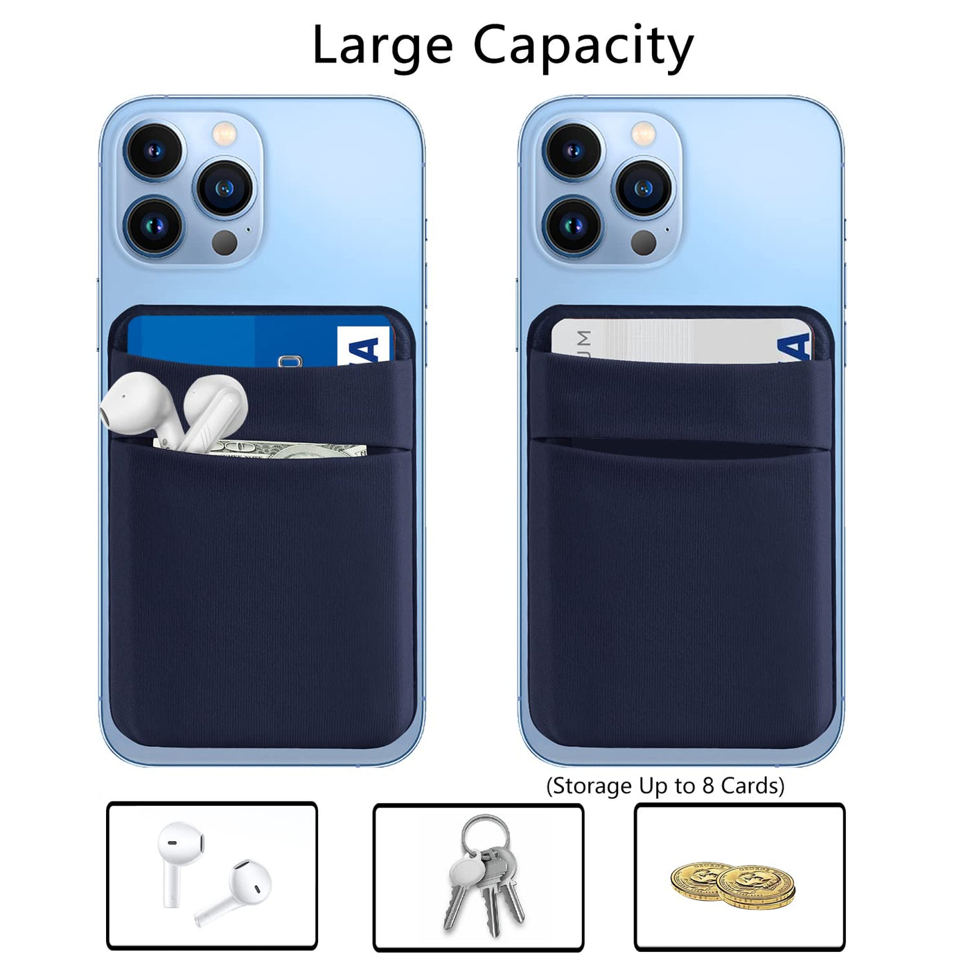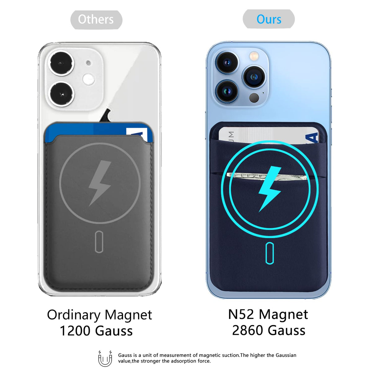 Yesdoes Magnetic Phone Card Holder,Compatible With Magsafe,Stretchy Lycra Double Pocket Wallet,Credit Id Card Cash Pouch,Mag Saf