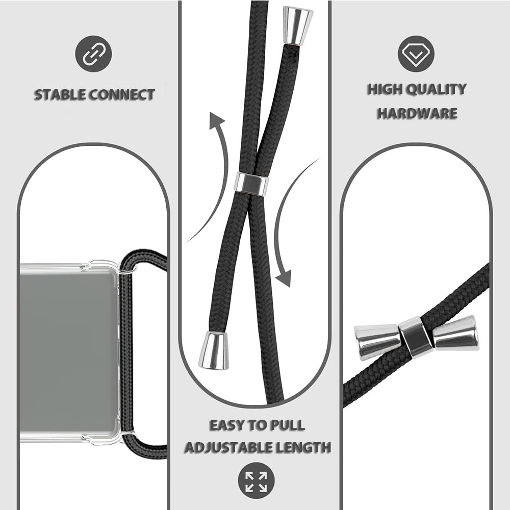 Q: How does the adjustable lanyard work with the case?A: The adjustable lanyard allows you to customize the length for comfortable wearing. It features elegant brass cord ends for a stylish look while keeping your hands free.