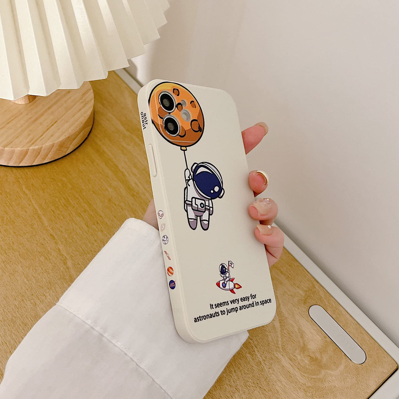 Yonds Queen Compatible With Iphone 13 Mini Cute Case, Cartoon Astronaut Space Rocket Moon Design Stylish Bumper Tpu Rubber Prote