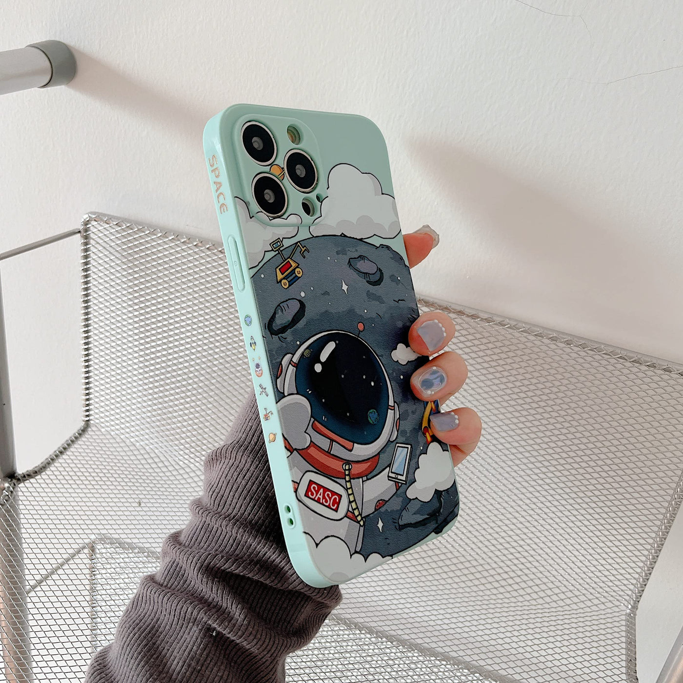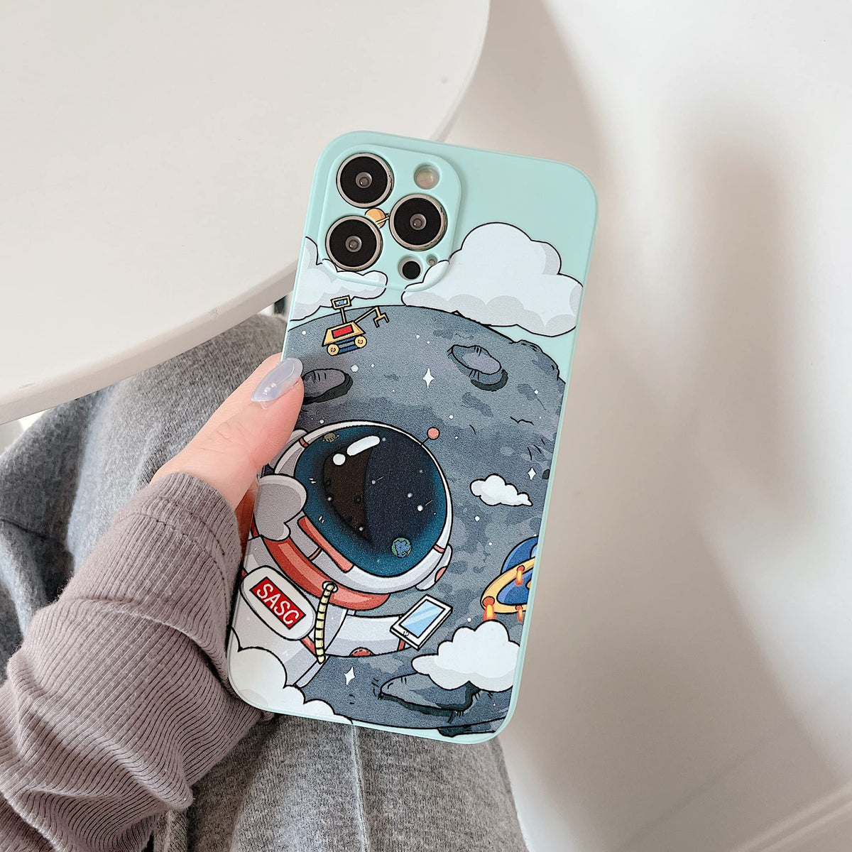 Yonds Queen For Iphone 12 Pro Cute Case, Cool Cartoon Astronaut Planet Moon Space Design Stylish Soft Tpu Bumper Shockproof Anti