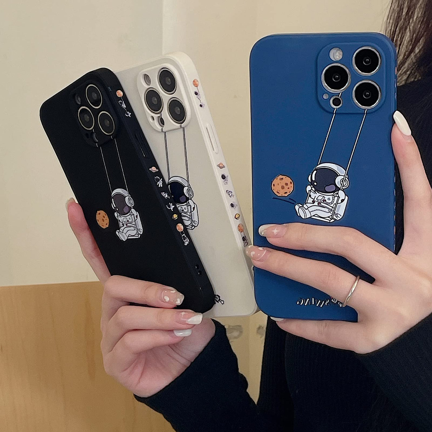 Yonds Queen For Iphone 13 Pro Max Cute Case, Cool Cartoon Swing Astronaut Planet Moon Design Stylish Soft Tpu Bumper Shockproof