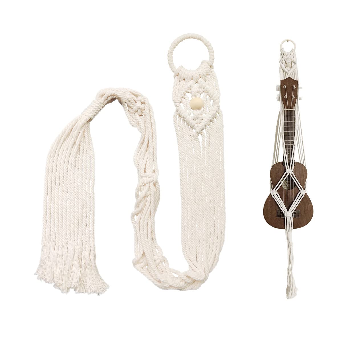 Ukulele Hanger,Braided Guitar Hanger,Guitar Wall Hanger The Braided Guitar Holder Is Made Of High-Quality Cotton, It Can Withstand Large Weights And Is Not Easy To Break Or Deform.Has A Quality Load Bearing Capacity To Hang Your Ukulele Stably. You Can Also Hang Your Other Instruments At Will,Saving Space,Making Your Life More Organized,And Adding Fun To The Room. Only Need To Open The Hanging Net, Put The Bottom Of The Guitar Into The Net, Easy To Use It Can Be Removed And Cleaned At Any Time, And It Can Be Reused For A Long Time Specifications: Material:High Quality Cotton Color:White Ring Size:As Picture Shown Packing:Ukulele Wall Hanger X1