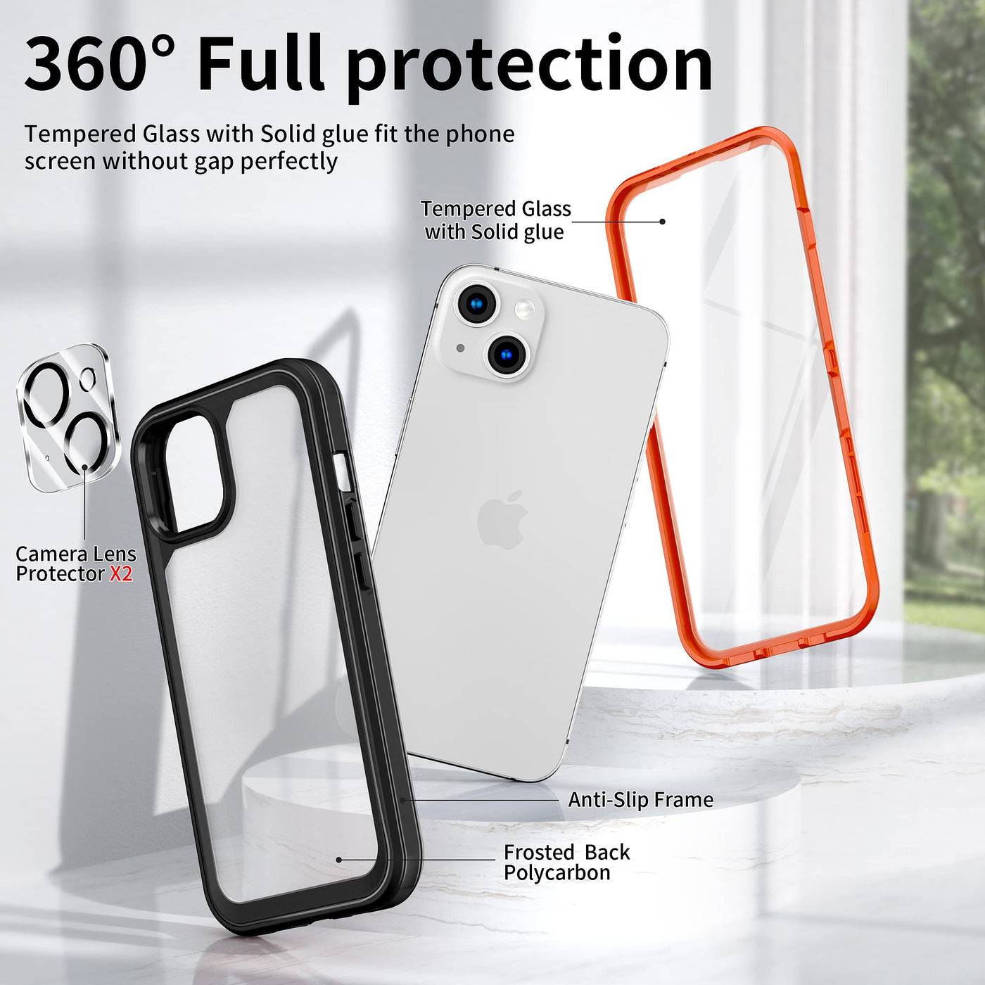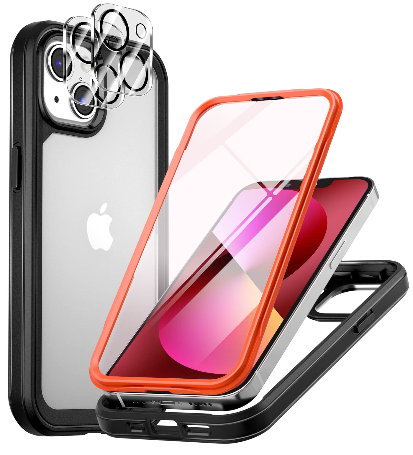 Zqe For Iphone 13 Case 61 With Built-In 9H Tempered Glass Screen Protector, 2 Camera Lens Protector