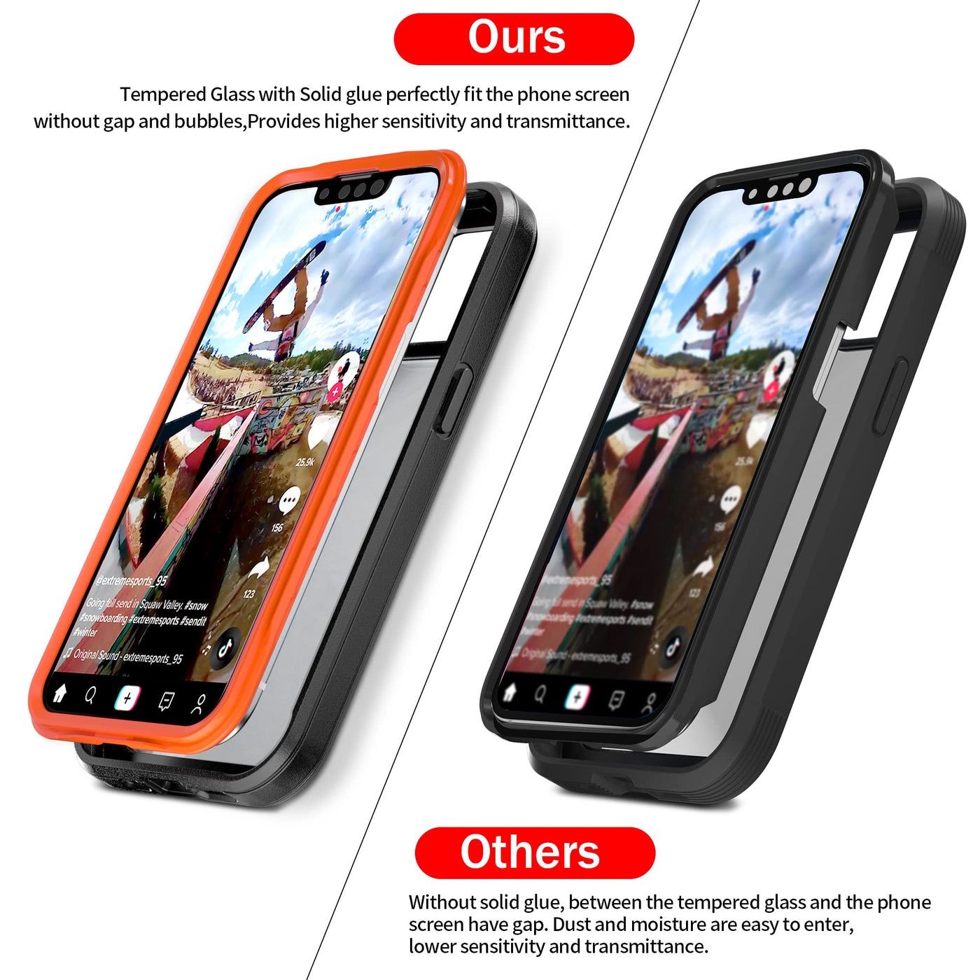 Q: How does the built-in tempered glass screen protector work?A: The built-in 9H tempered glass screen protector provides superior protection against scratches and shocks. Its ultra-thin design ensures high sensitivity and transmittance, while the AB glue ensures a perfect fit without gaps or bubbles.