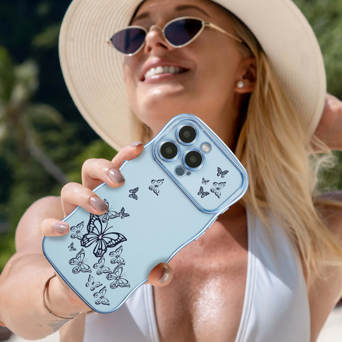 Ztofera For Iphone 14 Pro Max Case For Girl Women, Cute Curly Wave Frame With Luxury Plating Butterfly Pattern, Soft Tpu Shockpr