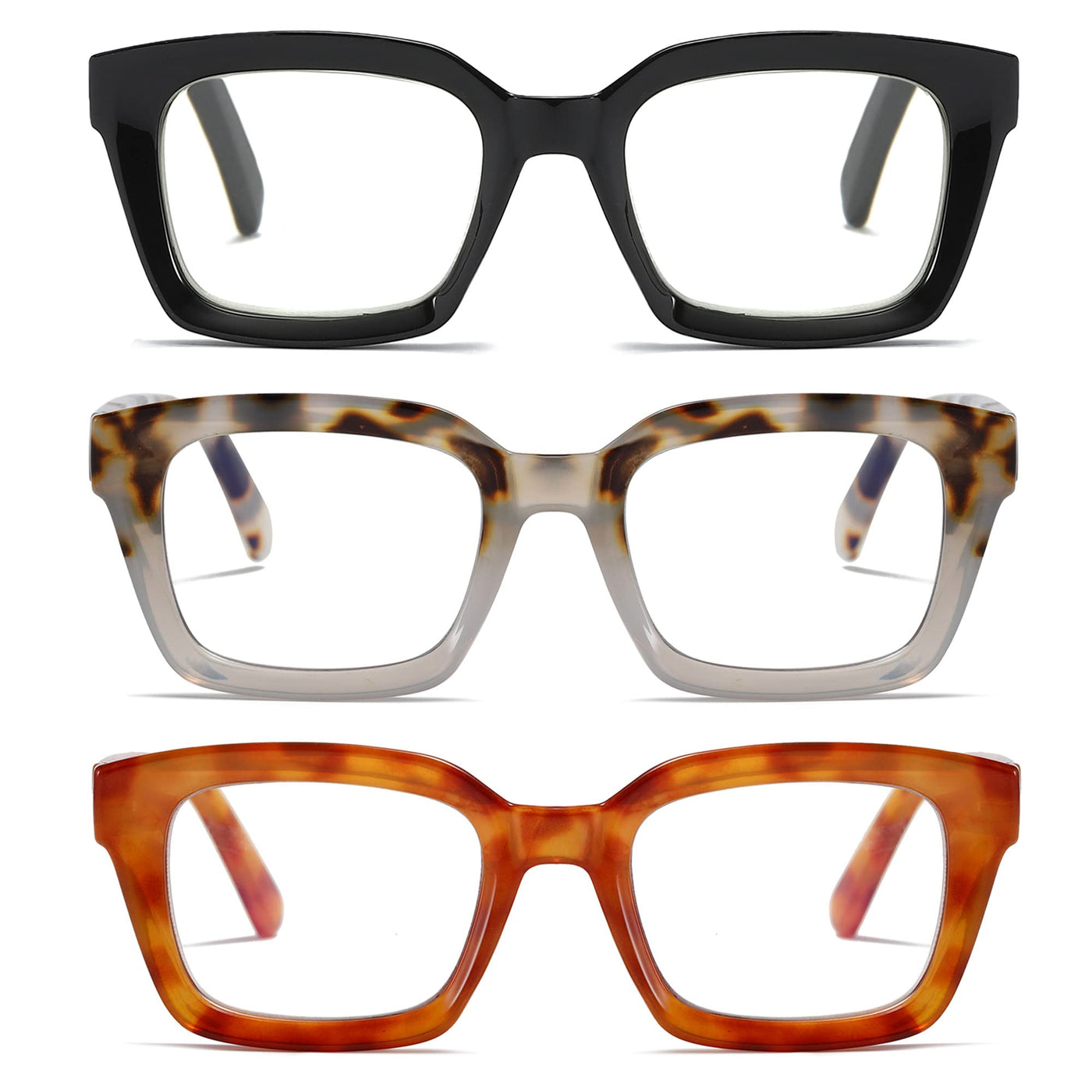 Zxyoo 3 Pack Oversize Square Design Reading Glasses For Women, Blue Light Blocking Computer Reader(Black Gray Yellow Leopard150)
