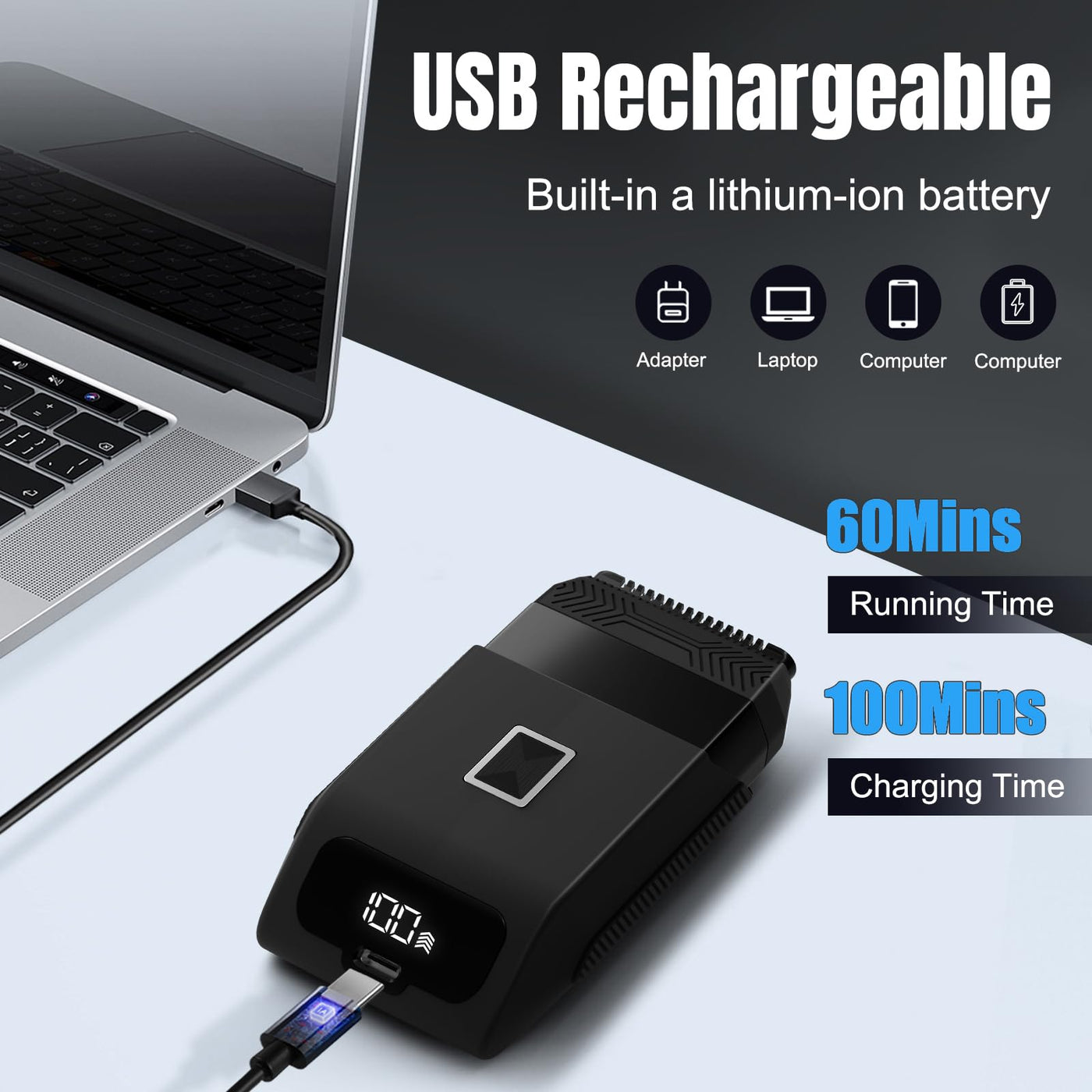 Q: How long can I use the Suttik Electric Razor on a full charge?A: After charging for 100 minutes, the Suttik Electric Razor provides up to 60 minutes of continuous shaving time, making it a reliable choice for quick grooming sessions.