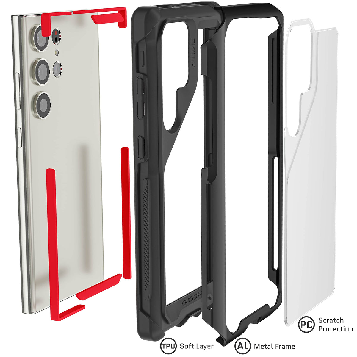 Ghostek Atomic Slim Case For Galaxy S23 Ultra (6.8) - Clear Back, S-Pen Access, Shockproof & Wireless Charging Compatible, Black