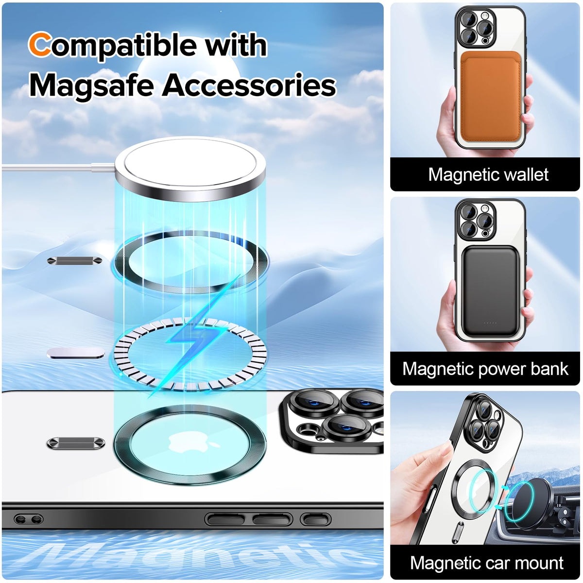 Hython Magnetic Clear Case For Iphone 16 Pro Case With Camera Lens Protector [Compatible With Magsafe] Plating Edge Slim Soft Tp