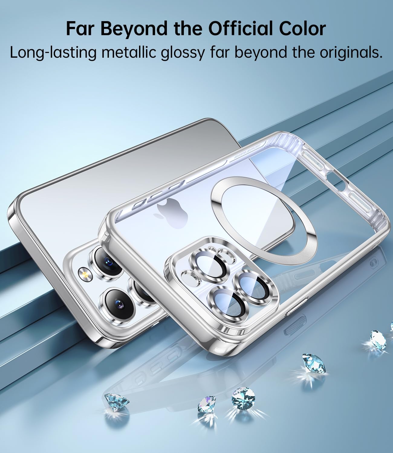 Jueshituo Magnetic Titanium Color For Iphone 15 Pro Case With Full Camera Protection [No.1 Strong N56 Magnets] [Military Grade D