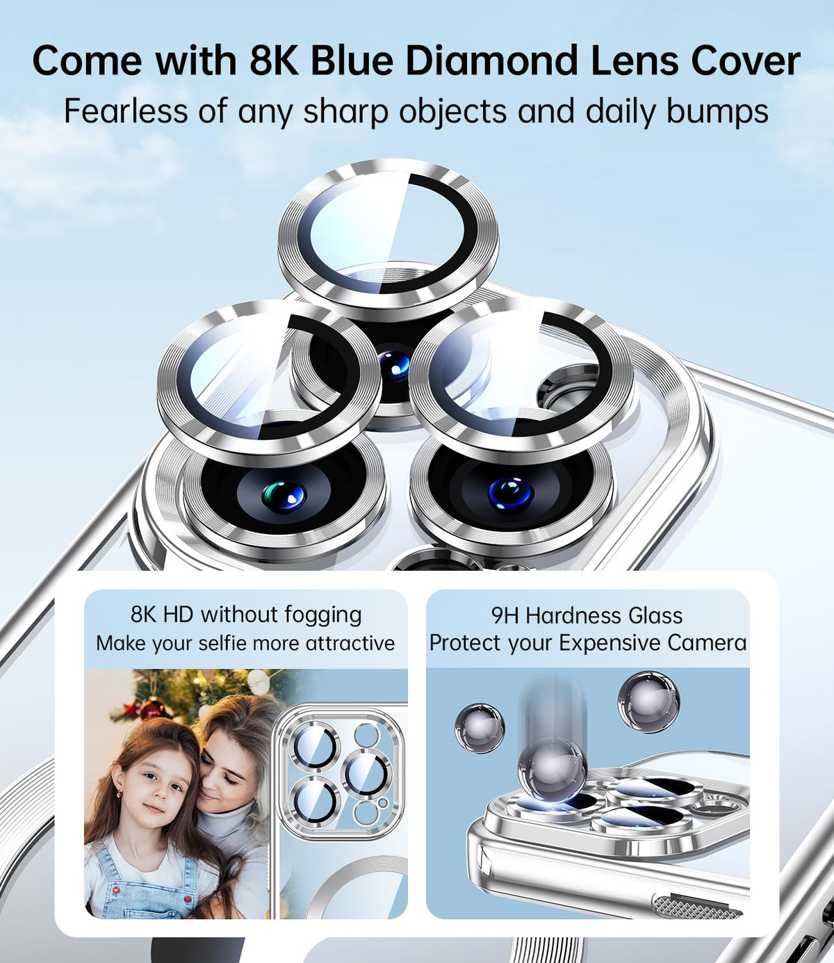 Q: What kind of protection does this case offer for the camera?A: This case features an 8K HD diamond camera cover that provides 100% protection for the camera lens, with raised bezels that prevent scratches and maintain photo quality.
