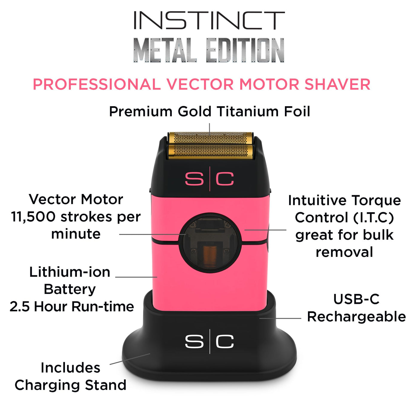 Stylecraft Instinct Metal Cordless Double Foil Shaver With In2 Vector Motor Intuitive Torque Control, Usb C Rechargeable (Pink)