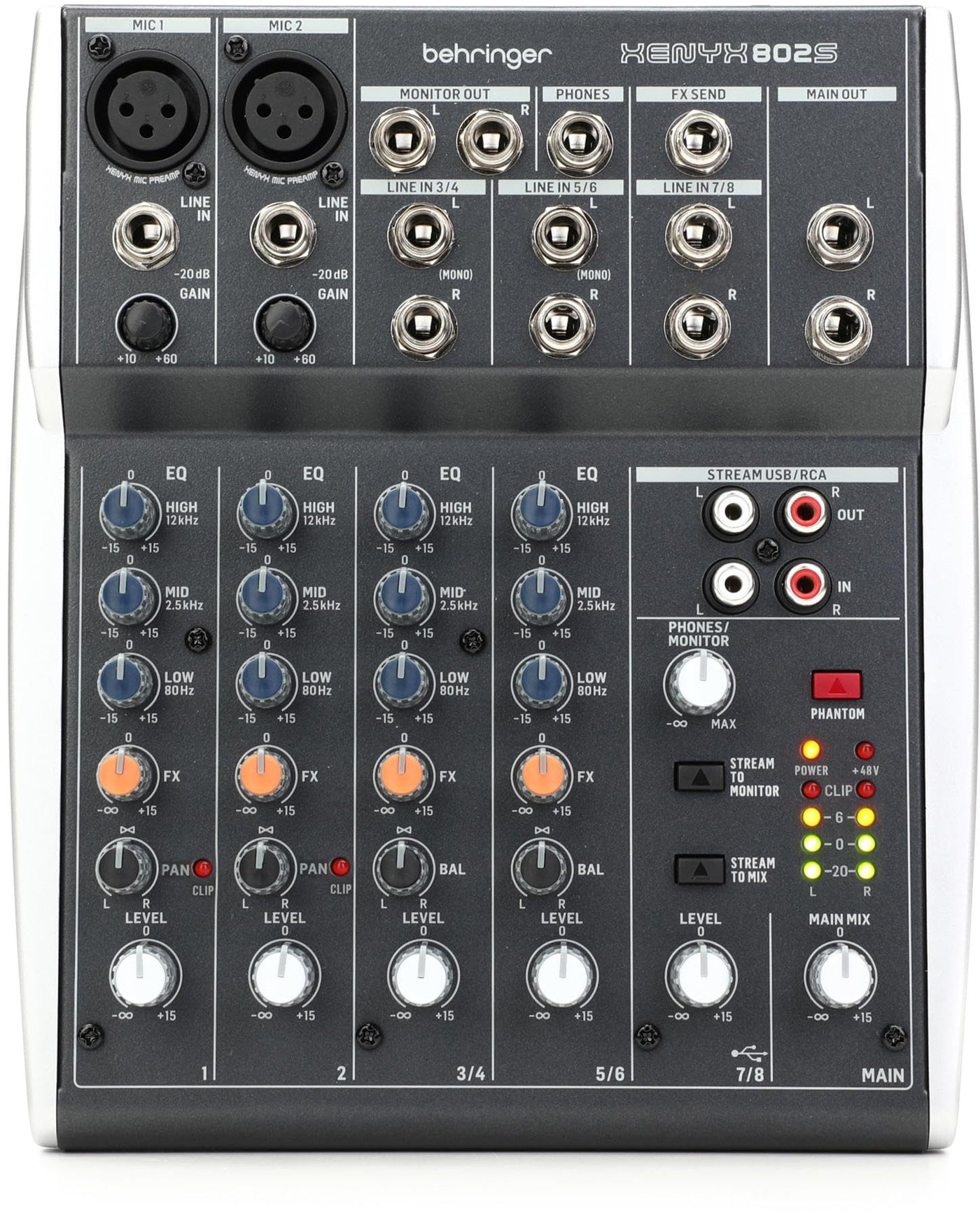 Behringer Xenyx 802S Premium Analog 8-Input Mixer With Usb Streaming Interface