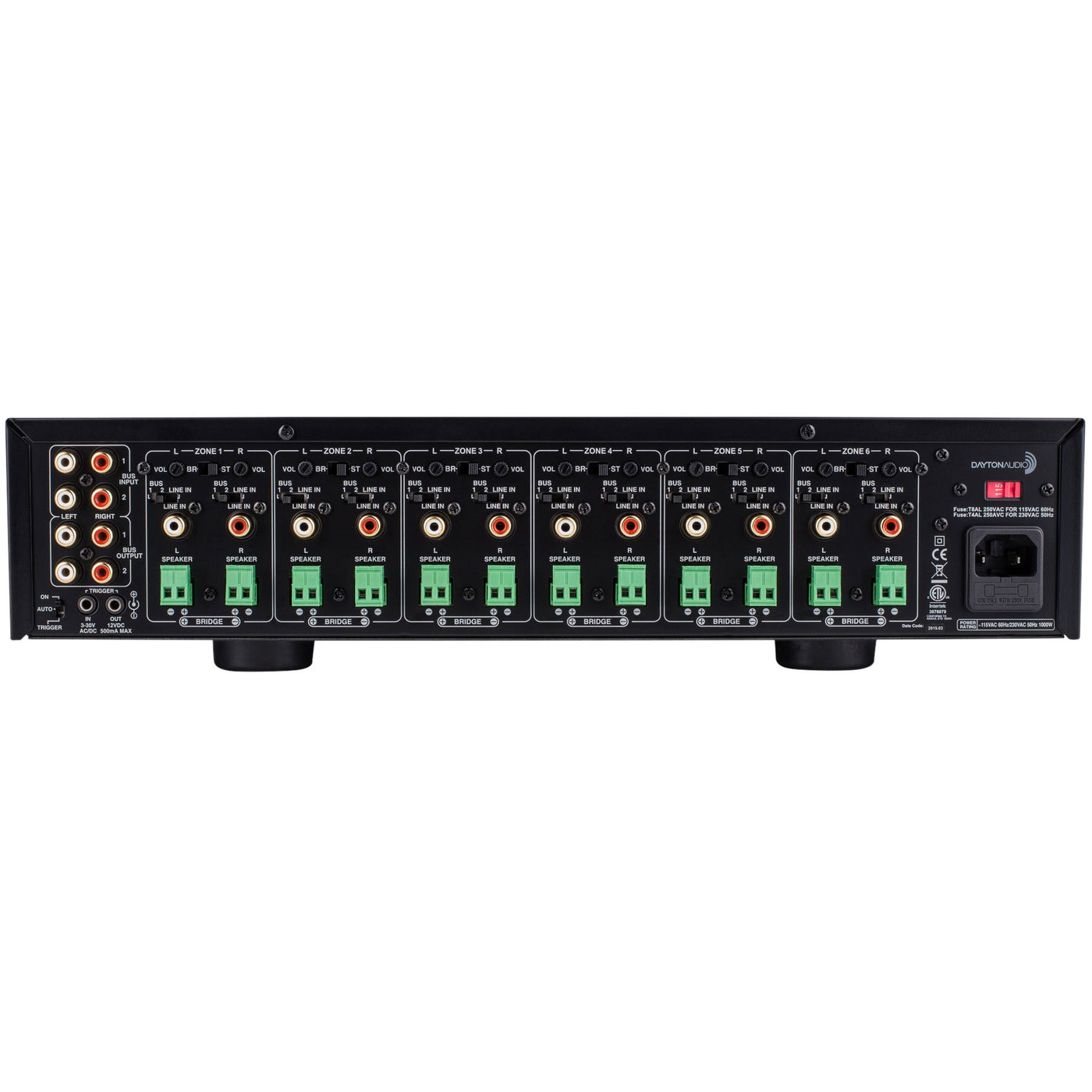 The Dayton Audio Ma1240A Features A Class-Ab Output Circuit That Delivers Superior Audiophile Sound Quality And Stable Performance. Each Of Your Installations Zones Can Benefit From The Ma1240As Clean Audio Reproduction And Exceptional Functionality. The Ma1240A Can Be Stacked With Other Audio Components And Includes Removable Ears For Mounting In Standard Audio Racks (2Ru).Two Common Or Bus Inputs Feed Audio Signals From Standard Line-Level Audio Sources To Any Or All Channels. Each Of The Twelve Channels Has Its Own Dedicated Input And Independent Level Adjustment To Provide Further Flexibility. By Simply Flipping A Single Switch, Two Channels Can Be Bridged To Increase The Total Power Output For That Zone. This Is Helpful When Extra Power Is Needed In Certain Areas.The Ma1240As Manual, Automatic On/Off, Or Triggered 12V Input Turn-On Modes Facilitate Easy Integration Into Automated Systems. For Quick And Easy Troubleshooting Of The System, Each Pair Of Channels Or Zones Has A Bi-Color Led To Indicate Its Operational Status.Specifications: Rated Power Output Per Channel: 40 Watts Into 8 Ohms, 60 Watts Into 4 Ohms (0.09% Thd) Bridged Output: 80 Watts Into 8 Ohms (0.30% Thd) Signal To Noise Ratio: 95 Db A-Weighted Input Impedance: 18K Ohms Input Sensitivity: 380 Mv Frequency Response: 5 Hz - 20 Khz Channel Crosstalk: 80 Db Dimensions: 16.7 W X 4 H X 14.25 D (Tabletop Configuration) Power Requirements: 115/230 Vac, 50/60 Hz Stand-By Power Rating: 115V, 0.264W Weight: 30 Lbs.