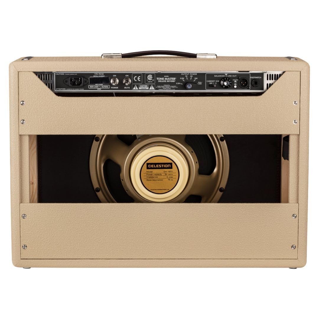 Blonde Vibe &Amp; Visuals Come To The Featherlight Tone Master Deluxe Reverb The Fender Tone Master Deluxe Reverb &Mdash; Here In Textured Blonde Vinyl With An Oxblood Grille &Mdash; Is A Stunning Facsimile Of A 60S-Era All-Tube Deluxe, Built Using The Latest In Fender Digital Amplification And Loaded With An Ultralight Celestion Neodymium-Magnet Speaker For A Distinct Rock N Roll Voicing. Faithful Modeling Of The Classic Tube Architecture Gives The Tone Master All The Headroom, Output, And Reactivity Of The Original At A Massive Weight Savings. A Solid Pinewood Cabinet Further Shaves Off Poundage. Inside Youll Find A 12 Celestion Neo G12 Creamback Speaker Voiced To Handle Everything From Midwest Indie Pop To Wide-Open Hard Rock Covers. Around Back, A 5-Way Power Attenuator Transparently Reduces Wattage To Let You Achieve Just The Right Tube-Flavored Cluck And Breakup For Any Live And Studio Setting. You Also Get An Xlr Balanced Output