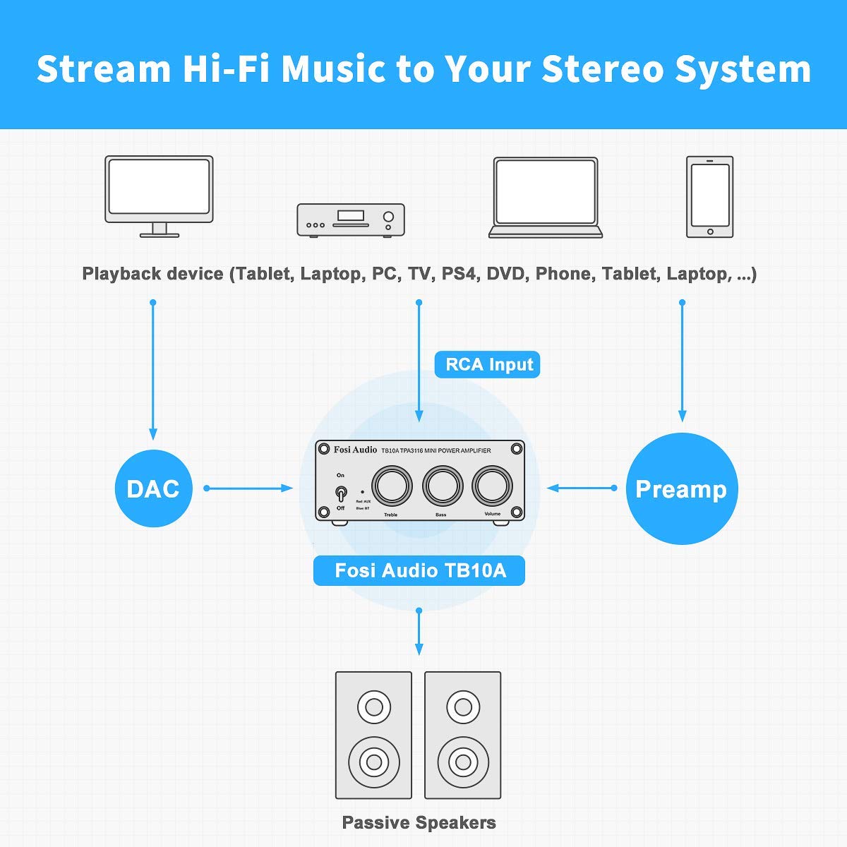 Fosi Audio Tb10A 2 Channel Stereo Audio Amplifier Receiver Mini Hi-Fi Class D Integrated Amp 2.0Ch For Home Speakers 100W X 2 With Bass And Treble Control Tpa3116(With Power Supply)