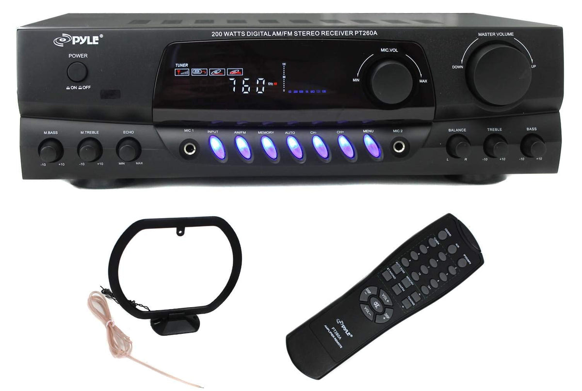 Product Descriptionpylehome Model : Pt260Adigital Amfm Stereo Receiver200 Watts Digital Amfm Stereo Receiverstereo Amplifier Power Main: 50W X 2 @ 8 Ohm, 100W X 2 @ 4 Ohm Audio Inputs With Ab Speaker Outputs Amfm Radio With Digital Display Screen Auto Scan,Memory, Radio Station Previousnext Control 50 Radio Station Pre-Set Memory Main Channel Volume, Balance, Treble, Bass & Gain Controls Microphone Volume, Bass, Treble & Echo Controls Two Microphone Input Jacks Three Rca Input Source 110220V Power Switch Amfm Antenna And Remote Control Included Dimension:17 X 115 X 47 Weight:143 Lbsthis 200-Watt Amp Brings Music To The Living Room With Crystal Clear Clarity With Plenty Of Inputs, You Wont Find This Amplifier Lacking It Plays Amfm Thanks To The Built In Tuner - Store Up To 50 Presets Its Equipped With Three Rca Inputs On The Back And Two A Mic Jacks On The Front, So You Can Turn This Amp Into A Karaoke Machine - Even Add An Echo Effect Easily Adjust The Volume, Balance, Treble, Bass On The Master Output For Total Control Of Your Sound Amfm Antenna Included Runs On 110 And 220 V Acfrom The Manufacturerthis 200-Watt Amp Brings Music To The Living Room With Crystal Clear Clarity With Plenty Of Inputs, You Wonat Find This Amplifier Lacking It Plays Amfm Thanks To The Built In Tuner - Store Up To 50 Presets Itas Equipped With Three Rca Inputs On The Back And Two-Quarter Inch Mic Jacks On The Front, So You Can Turn This Amp Into A Karaoke Machine - Even Add An Echo Effect Easily Adjust The Volume, Balance, Treble, Bass On The Master Output For Total Control Of Your Sound Amfm Antenna Included Runs On 110 And 220 V Ac