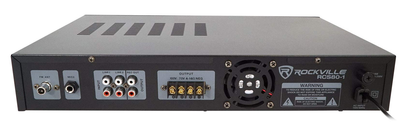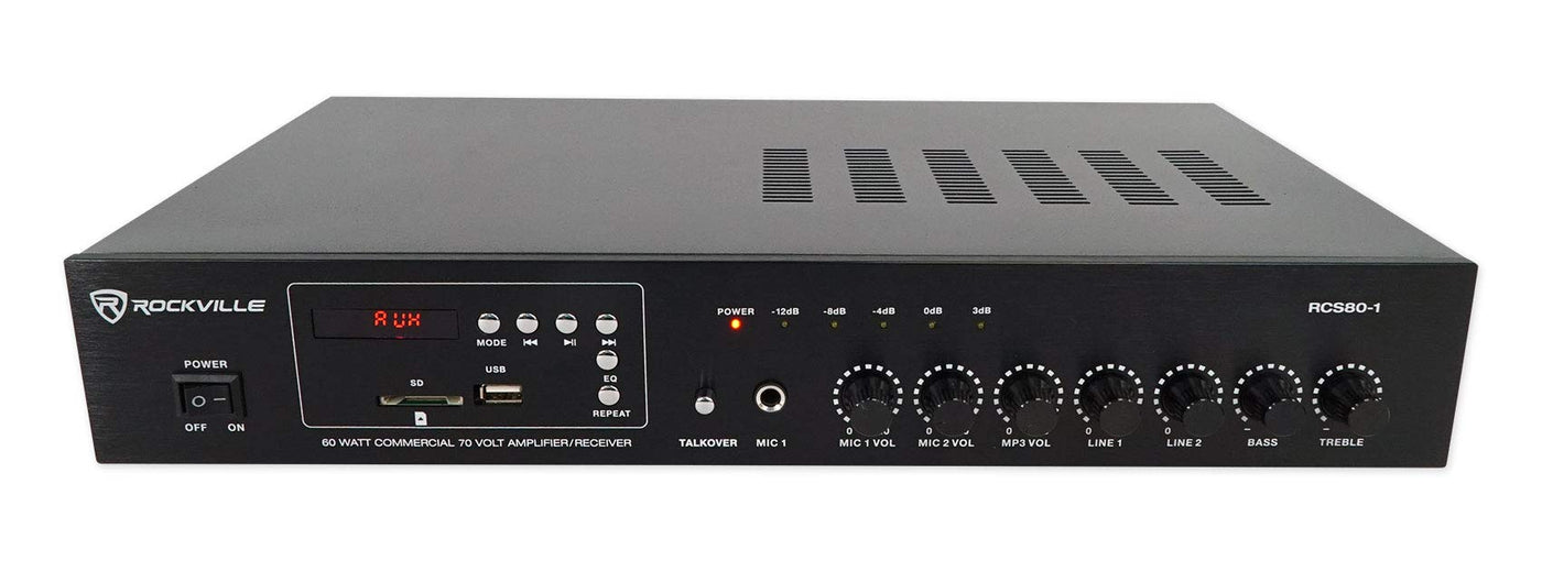 Rockville Rcs80-1 60 Watt 70V Commercial Amplifier, Bluetooth, 2 Mic Inputs Perfect For Restaurants, Bars, Caf S, Schools, Conf