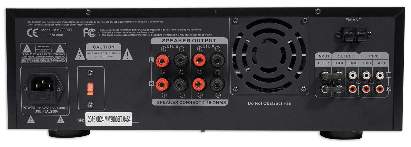 Technical Pro Mm2000Bt Powered Bluetooth Karaoke Mixer Amplifier Amp Sd, Usb