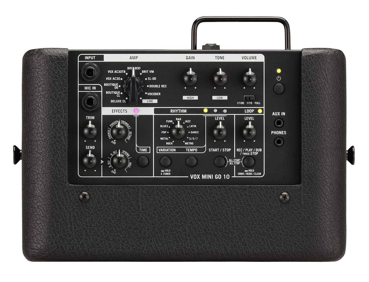Product Descriptionthe Vox Mini Go 10 Offers A Rhythm Function Is Perfect For Practice And Songwriting, And Has Been Updated With 33 Rhythm Patterns Along With The Looper Function, With 40+ Seconds Of Loop Time, The Rhythm Function Is Perfect For Buskers Updated Amp Models And Effects Have Been Added For More Natural And Responsive Playing The Mini Go Amps Can Be Powered By Any Portable Usb Battery That Fits The Correct Output Specs, Making It Easy To Power Your Amp Anywherefrom The Manufacturerthe Vox Mini Go 10 Offers A Rhythm Function Is Perfect For Practice And Songwriting, And Has Been Updated With 33 Rhythm Patterns Along With The Looper Function, With 40+ Seconds Of Loop Time, The Rhythm Function Is Perfect For Buskers Updated Amp Models And Effects Have Been Added For More Natural And Responsive Playing The Mini Go Amps Can Be Powered By Any Portable Usb Battery That Fits The Correct Output Specs, Making It Easy To Power Your Amp Anywhere