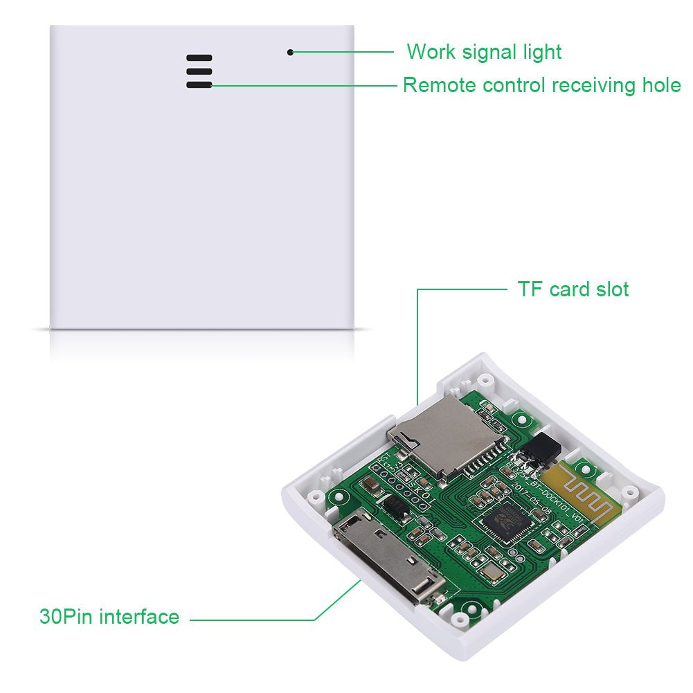 This Bluetooth Receiver Can Convert Non-Bluetooth For Iphone/Ipod Docking Station Into A Bluetooth-Enabled Dock, Just By Connecting This Product To A Sound Box Equipped With A 30Pin Male Connector Dock. Transmission Distance Up To 10M. Wireless Bluetooth Connection Reduces Cable Clutter Around The Dock. Play Your Favorite Songs In Your Device Through A Wireless Bluetooth Connection. Support Bluetooth-Enabled Digital Products, Such As For Ipad, For Ipod, For Iphone, Bluetooth Cell Phone, Bluetooth Pc, For Psp. Complies With Bluetooth 2.0. Plug And Play. Support A2Dp V1.2, Compatible With All Devices Enabled With A2Dp Stereo Bluetooth. Specifications: Output: Bluetooth Support File: Bluetooth V.2.0 A2Dp V.1.2 Connector: 30Pin Transmission Distance: Up To 33 Feet (10Meters) Away Color: White, Black (Optional) Package Weight: 15G Size: 43 X 35 X 7Mm / 1.69 X 1.38 X 0.28Inch Package Included: 1 X Bluetooth Music Receiver(The Dock Is Not Included) Note: Pls Check Your Sounddock Before Order! Just Plug Your For Iphone 4/4S To Your Speaker Dock, If Your Speaker Can Play Music Or Your 4/4S Phone Can Charge, That Means This Bluetooth Receiver Is The Right Adapter For Your Speaker.
