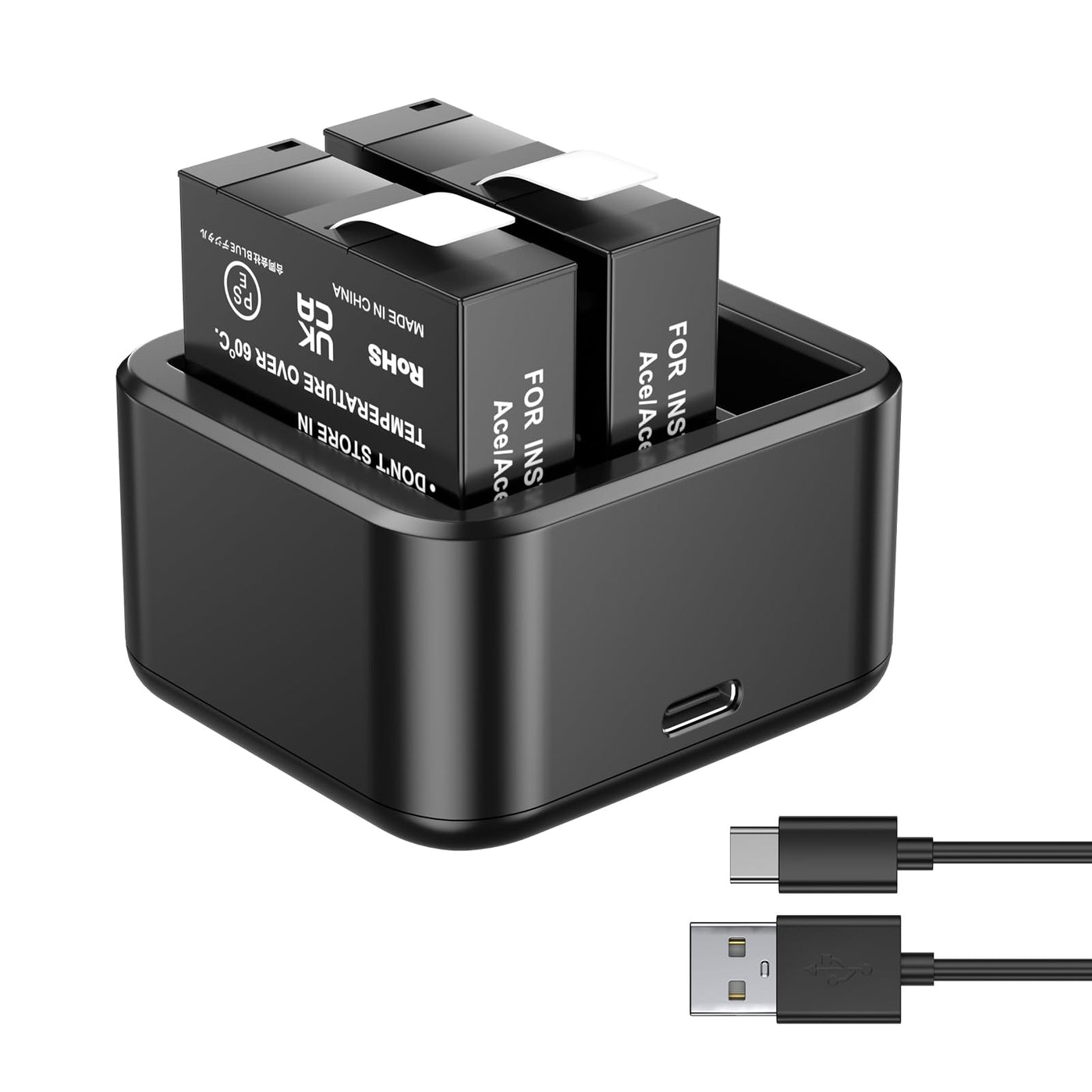 360 Ace/Ace Pro Replacement Battery 2 Packs 1800Mah With Triple Slot Fast Charger Hub For Insta360 Ace Pro/Ace Action Camera Accessories