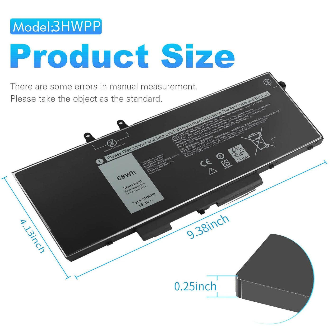 68Wh 3Hwpp 15.2V Battery Replacement For Dell Inspiron 17 7500 7506 7706 2 In 1 Black Latitude 5401 5410 5411 5501 5510 5511 E54