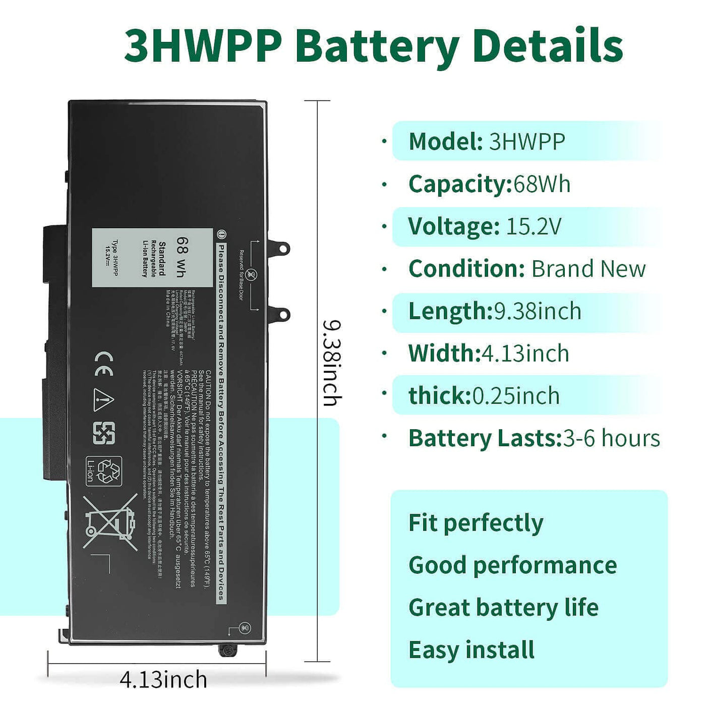Q: Is this battery easy to install?A: Yes, the 68Wh 3HWPP Replacement Battery comes with two free screwdrivers and an instruction manual, making the installation process straightforward for users.