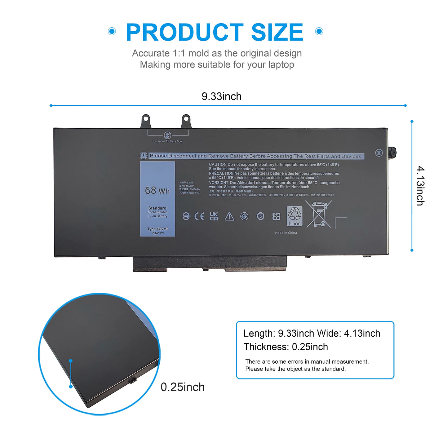 Battery Replacement: 68Wh 4GVMP, suitable for various Dell laptop models.