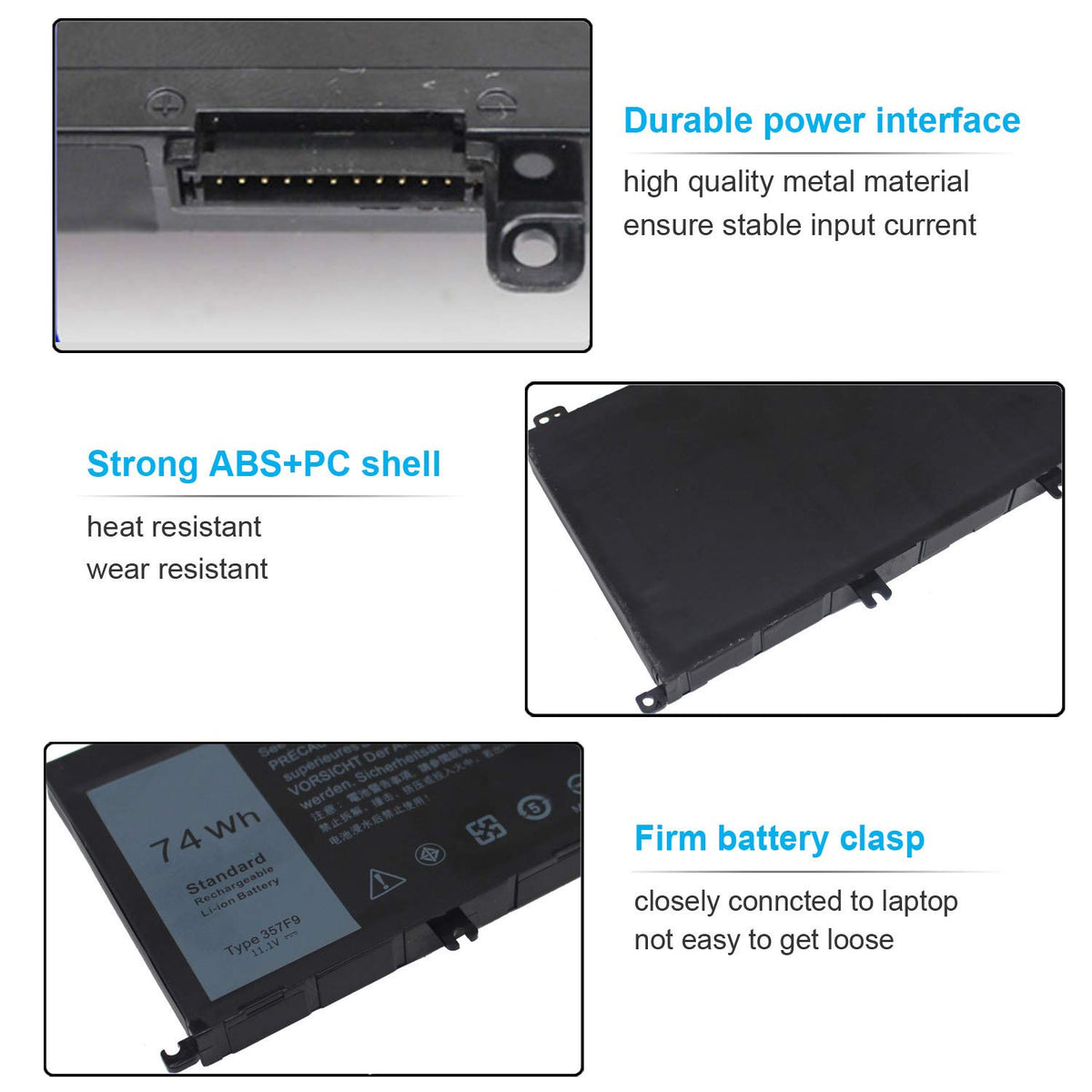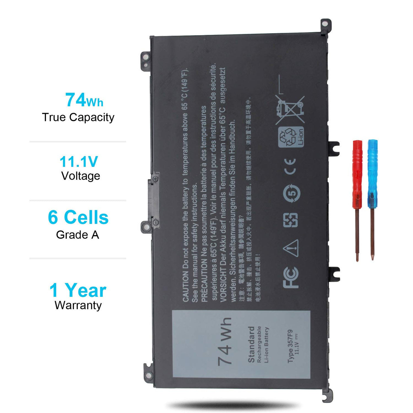 74Wh Type 357F9 71Jf4 Battery Compatible With Dell Inspiron 15 7000 7559 7557 7567 7566 7759 15 5576 5577 Ins15Pd Series 15 7559 0Gfj6 P57F 071Jf4 0357F9 6 Cell 11.1V 11.4V Li Ion Laptop Battery New