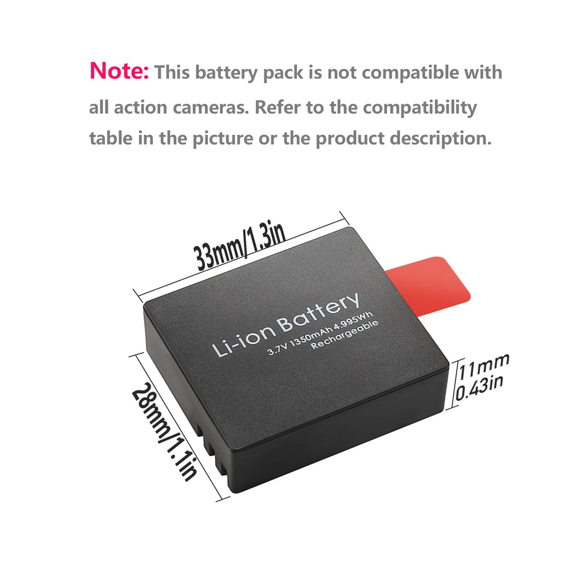 Action Camera Battery Pack, 1350Mah Rechargeable Battery(3 Pack) With Usb Dual Charger For Sports Camera, Compatible With Akaso