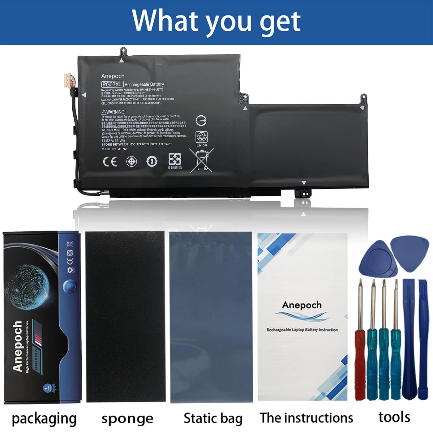Q: What models are compatible with the Anepoch PG03XL laptop battery?A: The Anepoch PG03XL battery is compatible with various HP Spectre X360 15 models, including but not limited to 15-AP011DX, 15-AP000NA, 15-AP000NF, and 15-AP012DX. It is essential to verify your original battery's part number for proper replacement.
