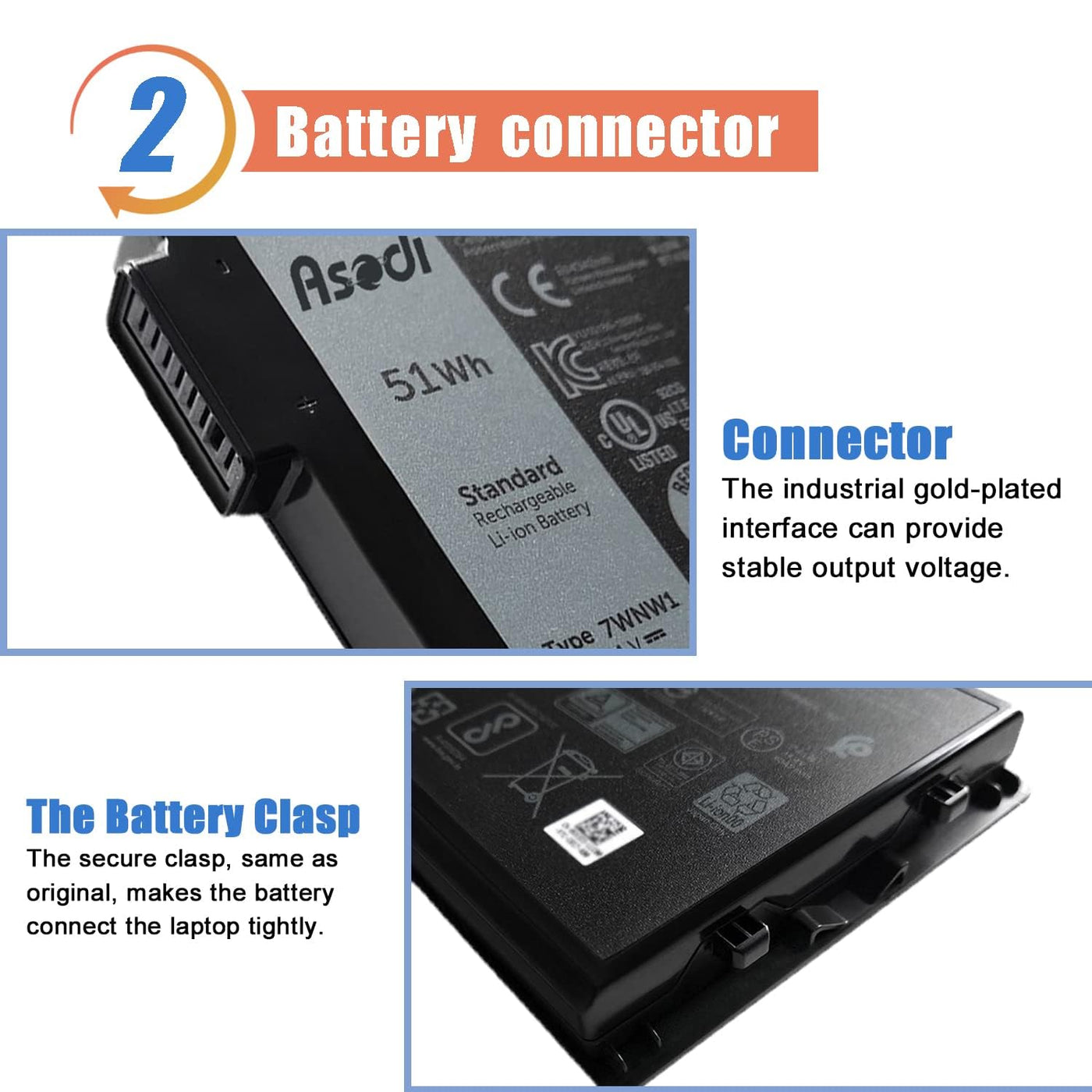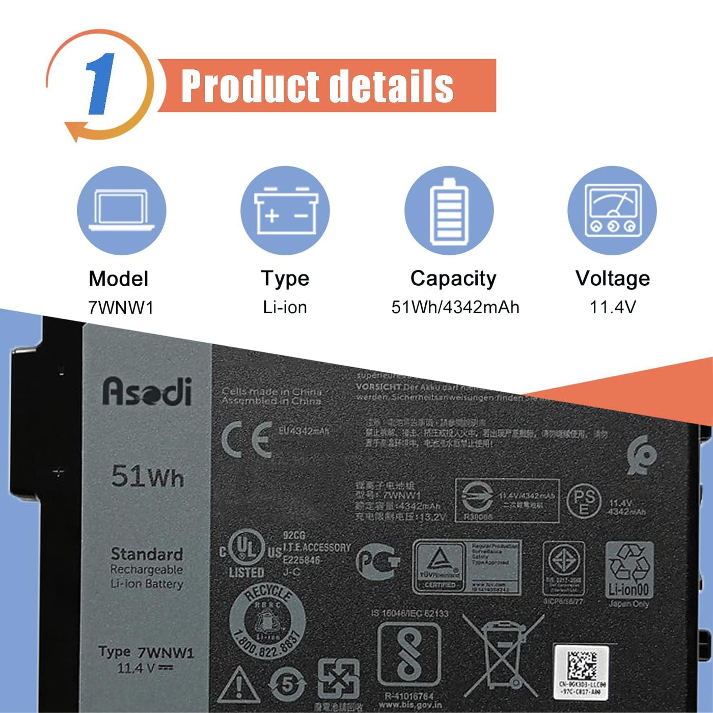 Welcome To Asodi ! We Focus On Our Batteries High-Quality And Pay More Attention To After-Sales Service All The Time. You Can Use It Safely. At The Same Time We Have Concentrated On The Laptop Batteries Production Manufacturing Work. We Promise That Our Batteries Are Selt Directly From The Factory To The Customers.Please Rest Assured To Buy! Note:If The New Battery Is Not Recognized During The Initial Installation, Please Reinstall And Check If The Interface Is Fully Connected.Discharge The New Battery To 5% (Not 0%), Then Charge And Cycle 3-4 Times To Wake Up The New Battery. Specifications: .Battery Type: Rechargeable Li-Ion Battery .Model: 7Wnw1 .Voltage: 11.4V .Capatity: 51Wh/4342Mah (Up To 500 Recharge Cycles Over The Life Of The Battery) .Compatible Models (Use ''Ctrl+F To Find Your Model Quickly'') For Dell Latitude 7424 Rugged Extreme Series . For Dell Latitude 5420 Rugged Extreme Series . For Dell Latitude 5424 Rugged Extreme Series . .Compatible Part Numbers: 7Wnw1 Dmf8C Gk3D3 0Dmf8C 0Gk3D3. .Package Included: 1X 7Wnw1 Battery 1X Instruction Manual .For Optimal Use Battery: Discharge The New Battery To 5% (Not 0%), Then Charge And Cycle 3-4 Times To Get The New Battery A Full Capacity. The Important Point Is To Perform A Full Discharge Charge Every Other Month To Extend Battery Life. Don'T Connect Adapter For A Long Time While Using The Battery. It May Damage The Battery. Avoid Artificial Shocks, Disassembly, Crush Or Puncture. Do Not Dispose Of In Fire Or Water. Avoid Using The Battery In An Environment Where The Temperature Is Too High Or Too Low.