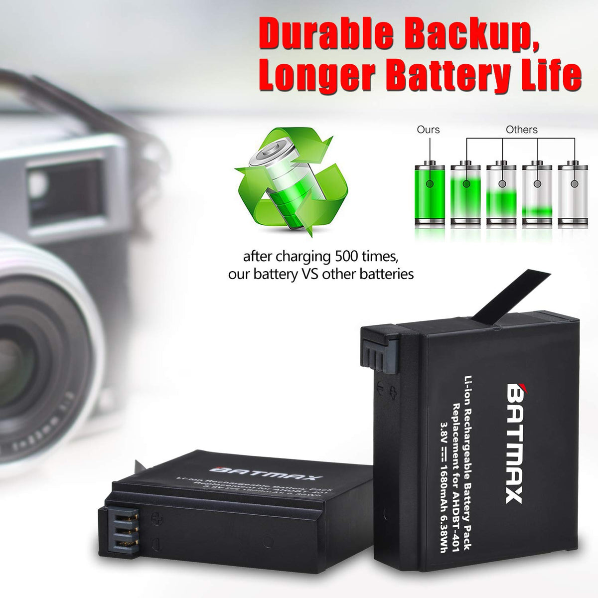 Batmax 4 Pack High Capacity Go Pro Camera Hero 4 Replacement Batteries For Gopro Hero4, Ahdbt 401 Battery Accessory