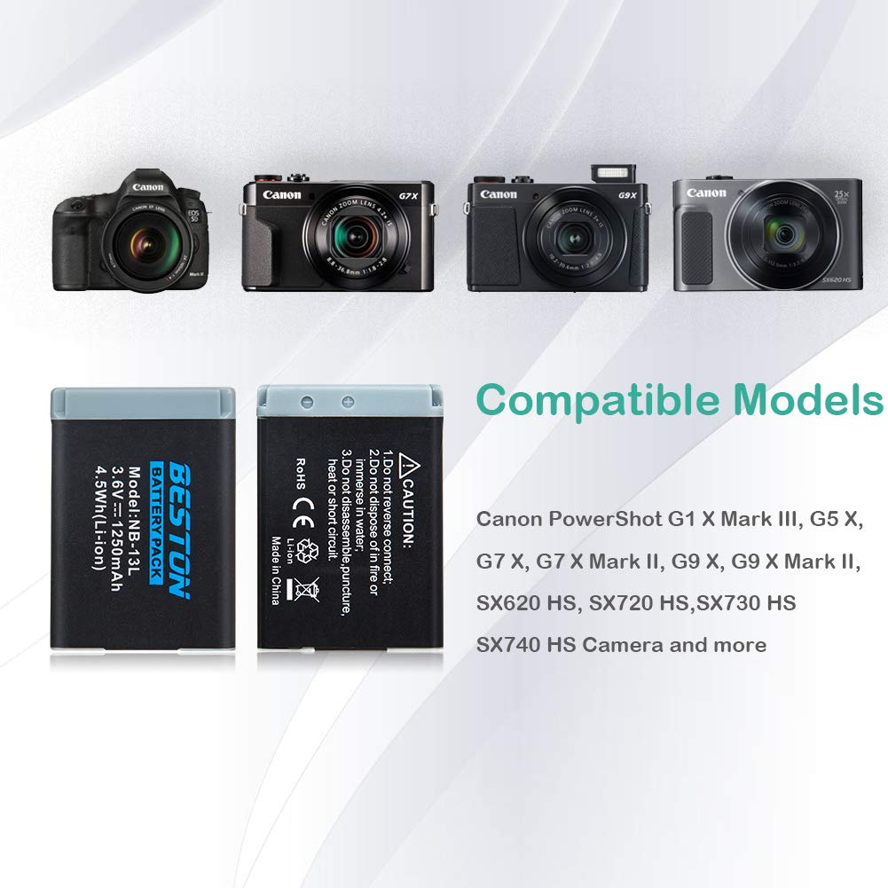 Beston Nb-13L Battery Pack And Usb Rapid Charger For Canon Powershot G1 X Mark Iii, G5 X, G7 X, G7 X Mark Ii, G9 X, G9 X Mark Ii, Sx620 Hs, Sx720 Hs,Sx730 Hs Sx740 Hs Camera