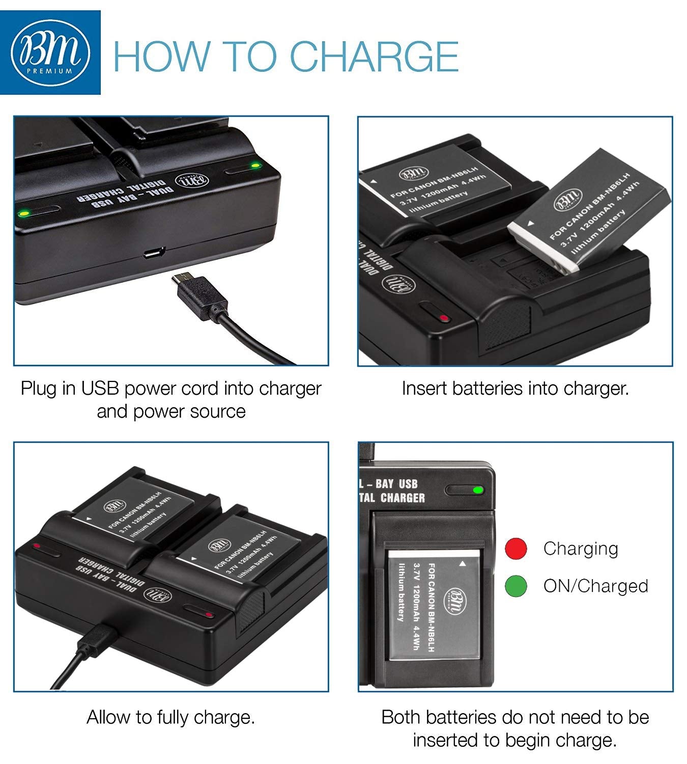 BM 2 Pack NB 6L, NB 6LH Batteries and Dual Battery Charger for Canon PowerShot S120, SX170, SX260, SX280, SX500, SX510, SX520, SX530, SX540, SX600, SX610, SX700, SX710, ELPH 500, D10, D20, D30 Camera