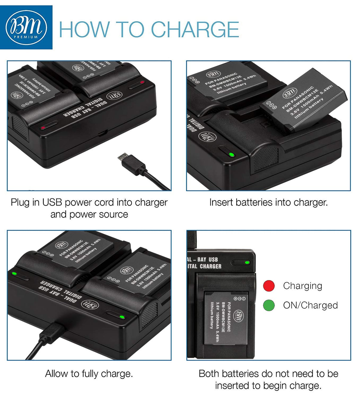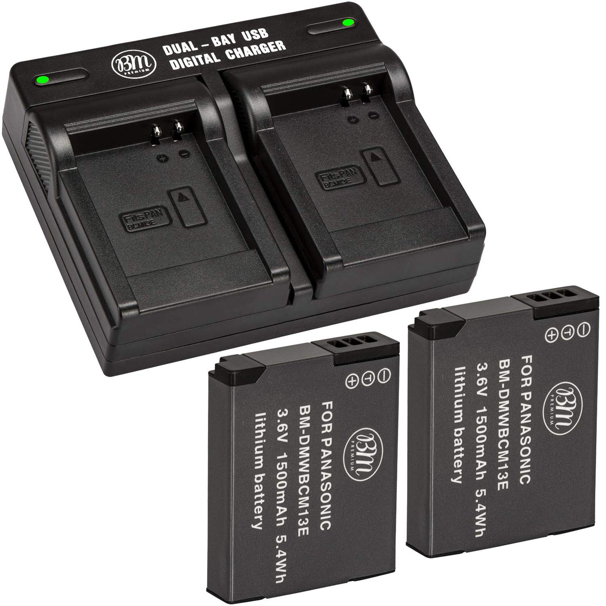BM 2 Pack of DMW BCM13E Batteries and Dual Battery Charger for Panasonic Lumix DC TS7,DMC FT5A, LZ40, TS5, TS6, TZ37, TZ40, TZ41, TZ55, TZ60, ZS27, ZS30, DMC ZS35, DMC ZS40, DMC ZS45, DMC ZS50 Camera