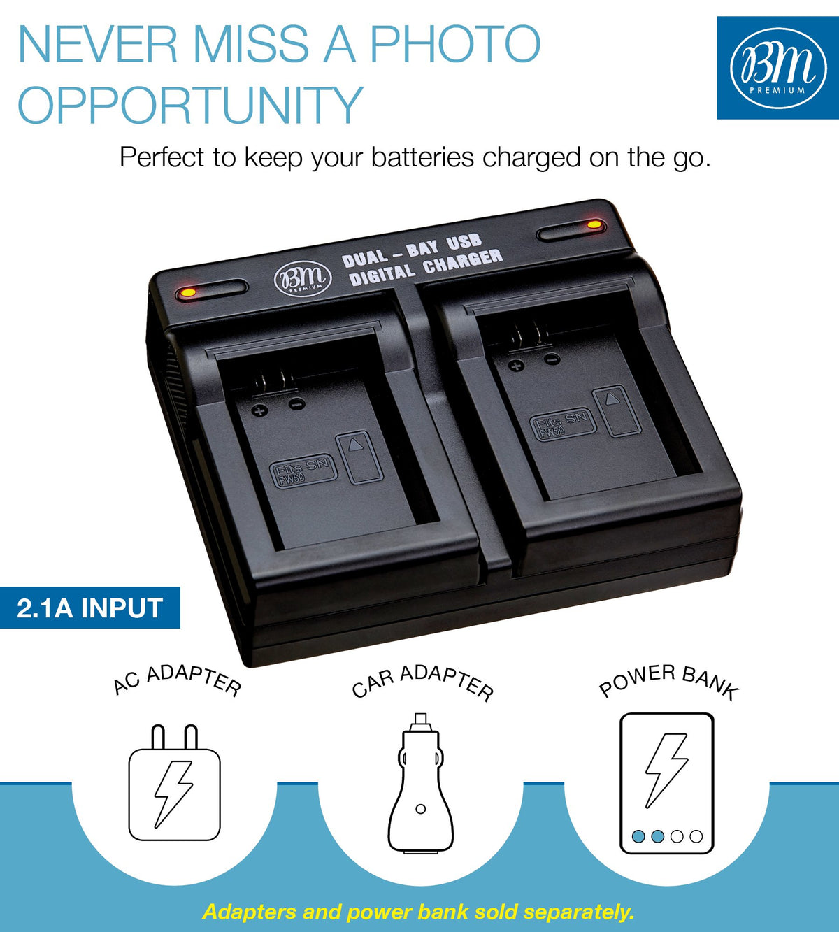 BM Premium 2 Batteries and Dual Bay Charger for Sony ZV E10, A7 II, A6100, A6400, DSC RX10 IV, DSC RX10 II, RX10 III, Alpha 7, Alpha 7R, a7, a7R, A7s, A7s II, a3000 a5000 a5100 a6000 a6300 a6500