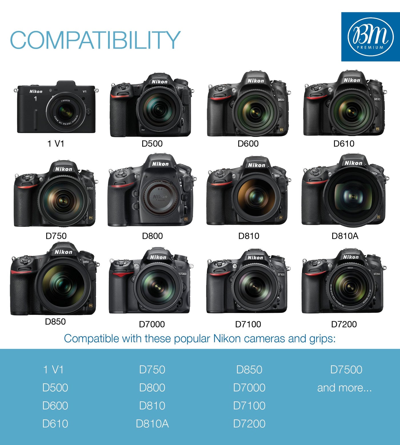 Battery is compatible with the following cameras: Nikon 1 V1 D500 D600 D610 D750 D800 D810 D810A D850 D7000 D7100 D7200 D7500 Z6 Z7