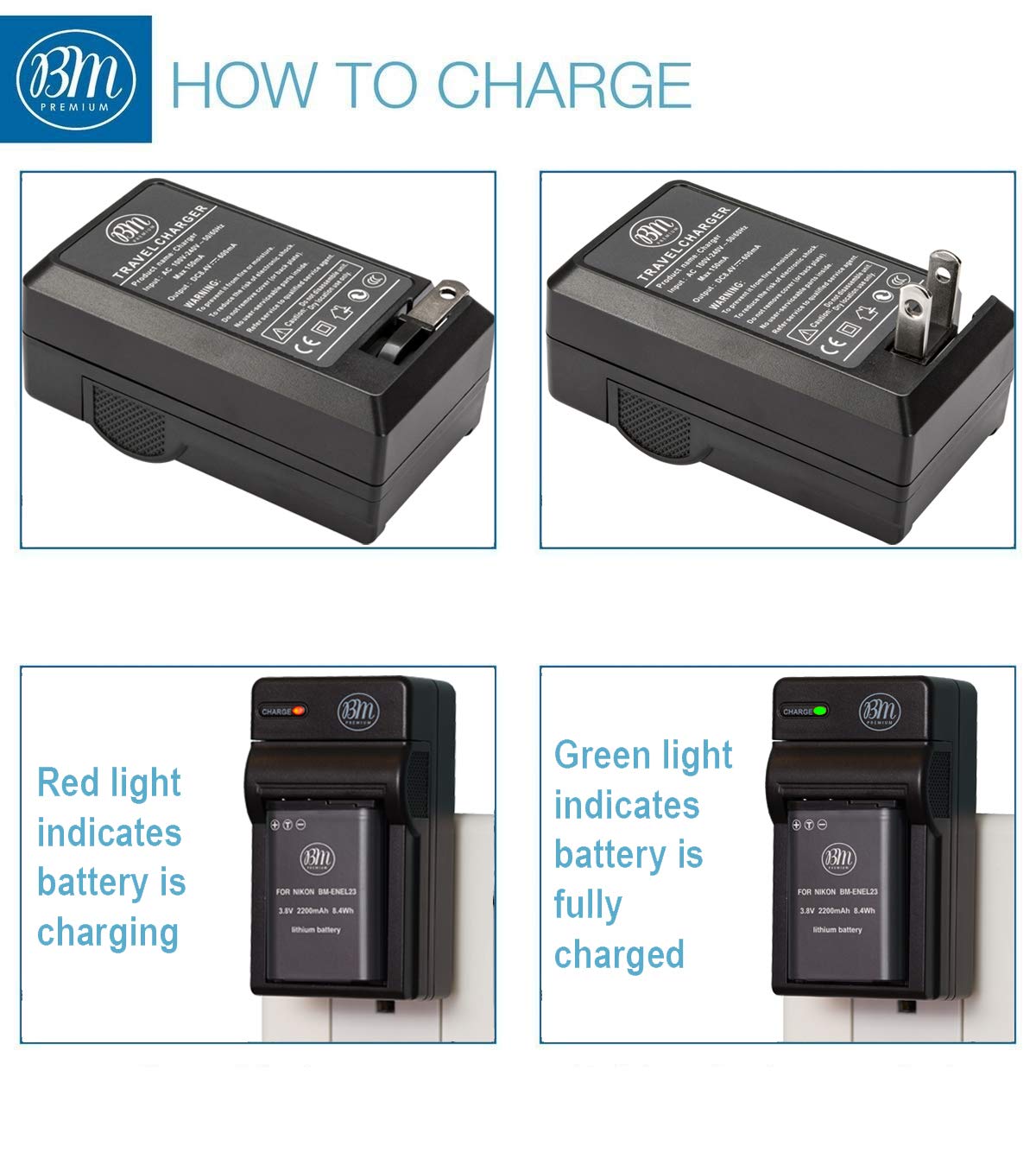 Bm Premium 2 Pack Of En El23 Batteries And Battery Charger For Nikon Coolpix B700, P900, P600, P610, S810C Digital Camera