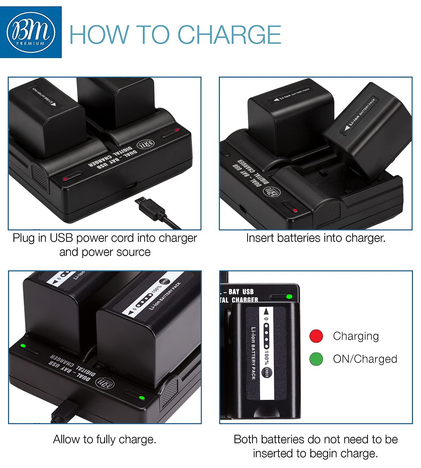 BM Premium 2 VW VBD58 Batteries and Dual Bay Charger for Panasonic AG VBR59, BGH1, HC X1, HC X1500, HC X2000, AG CX10, AG CX350, AG UX180, AG AC30, AG UX90, AG DVX200, HC MDH3E, AJ PX270, AJ PX230