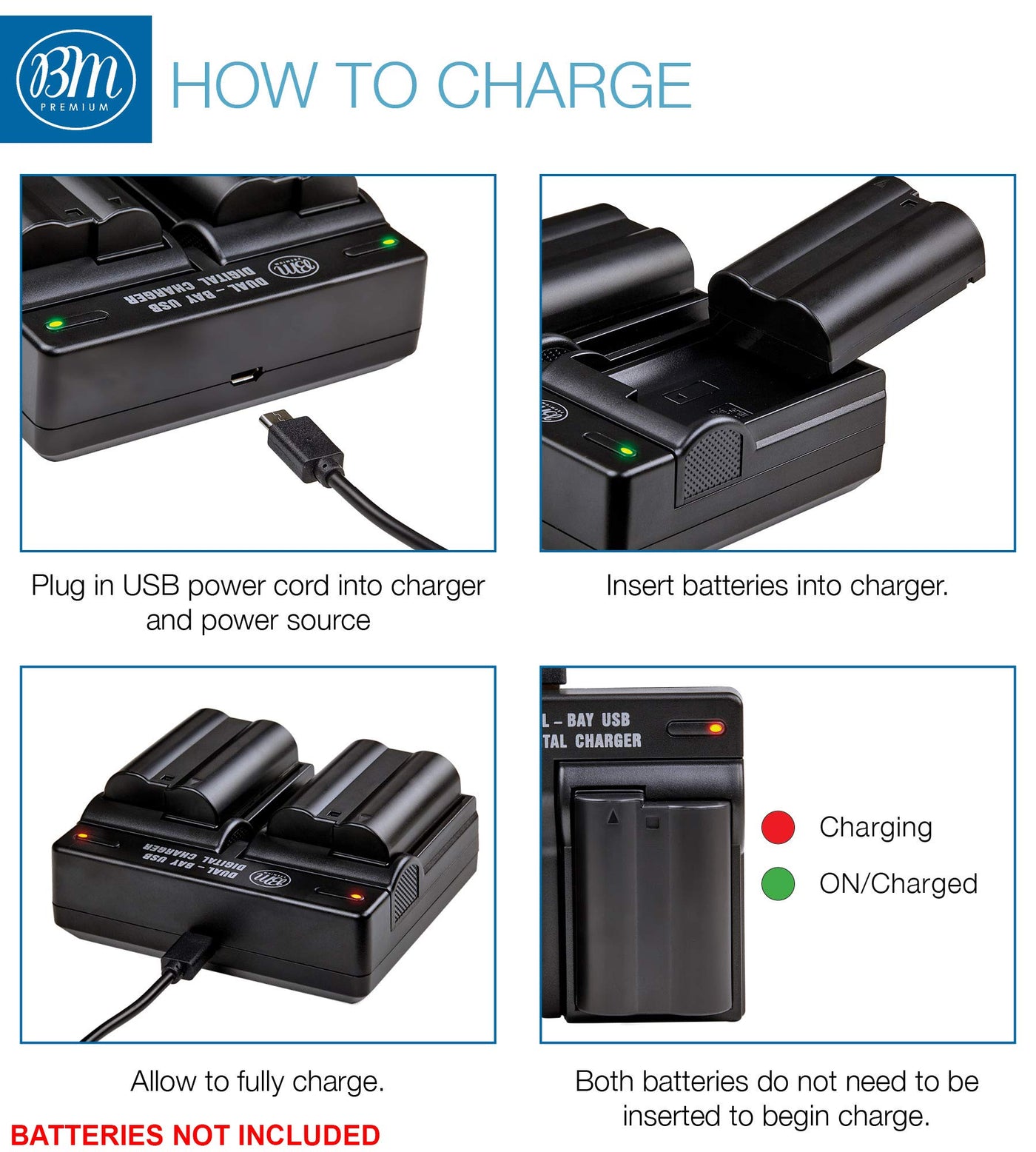 BM Premium Pack of 2 EN EL15 Batteries and USB Dual Battery Charger Kit for Nikon D7500, 1 V1, D500, D600, D610, D750, D800, D810, D810A, D850, D7000, D7100, D7200 Digital SLR Cameras