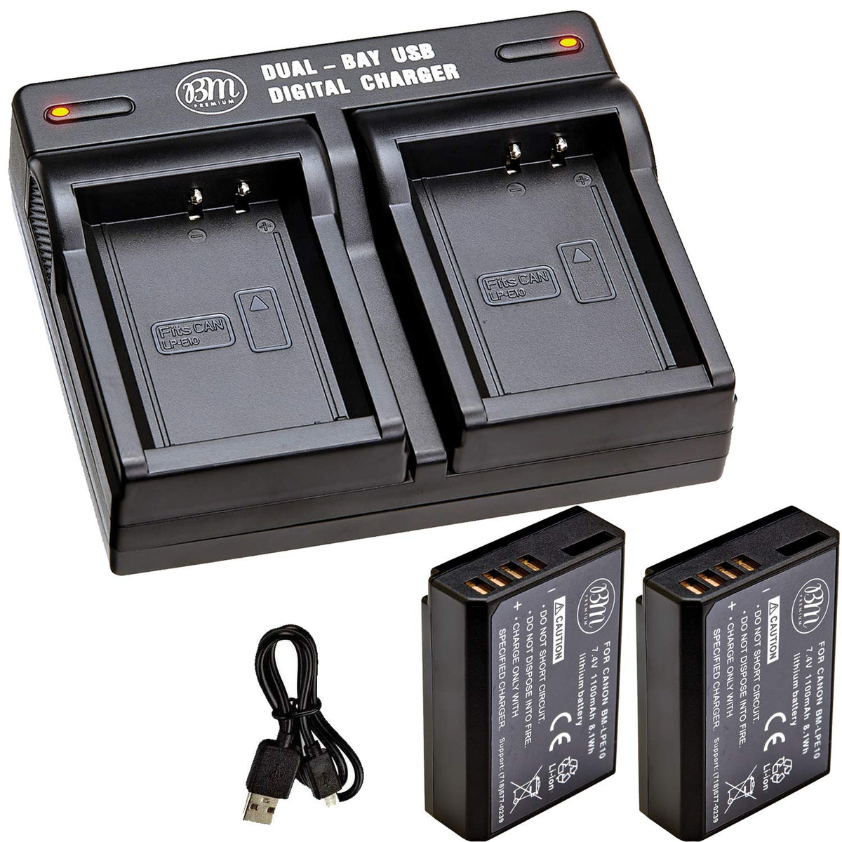 BM Premium Pack of 2 LP E10 Batteries and USB Dual Battery Charger Kit for Canon EOS Rebel T3, T5, T6, T7, T100, Kiss X50, Kiss X70, EOS 1100D, EOS 1200D, EOS 1300D, EOS 2000D, EOS 4000D Cameras